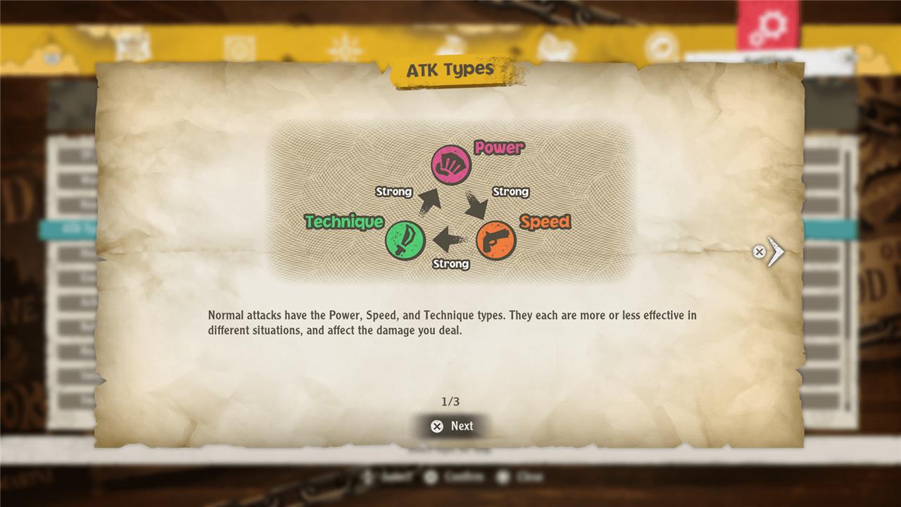 One Piece Odyssey has a rock-paper-scissors-style set of weaknesses and resistances for attack types – Power (fist icon) is strong against Speed, Speed (gun icon) is strong against Technique, and Technique (sword icon) is strong against Power. Both your crew and the enemies you’ll face have these types, so certain fighters will be better against different baddies. (It’s not particularly complicated, though, so you’ll often end up falling back on the tried and true Just Punch Them approach.)