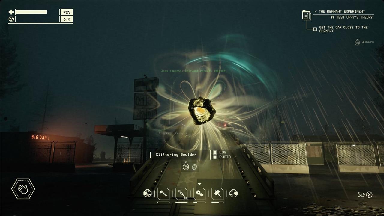 Once you’ve picked up the mechanic’s eye headset as soon as you get to the auto shop, you’ll be able to scan things in Pacific Drive with L1 on a controller or C on your keyboard. This enters the information into your logbook menu.