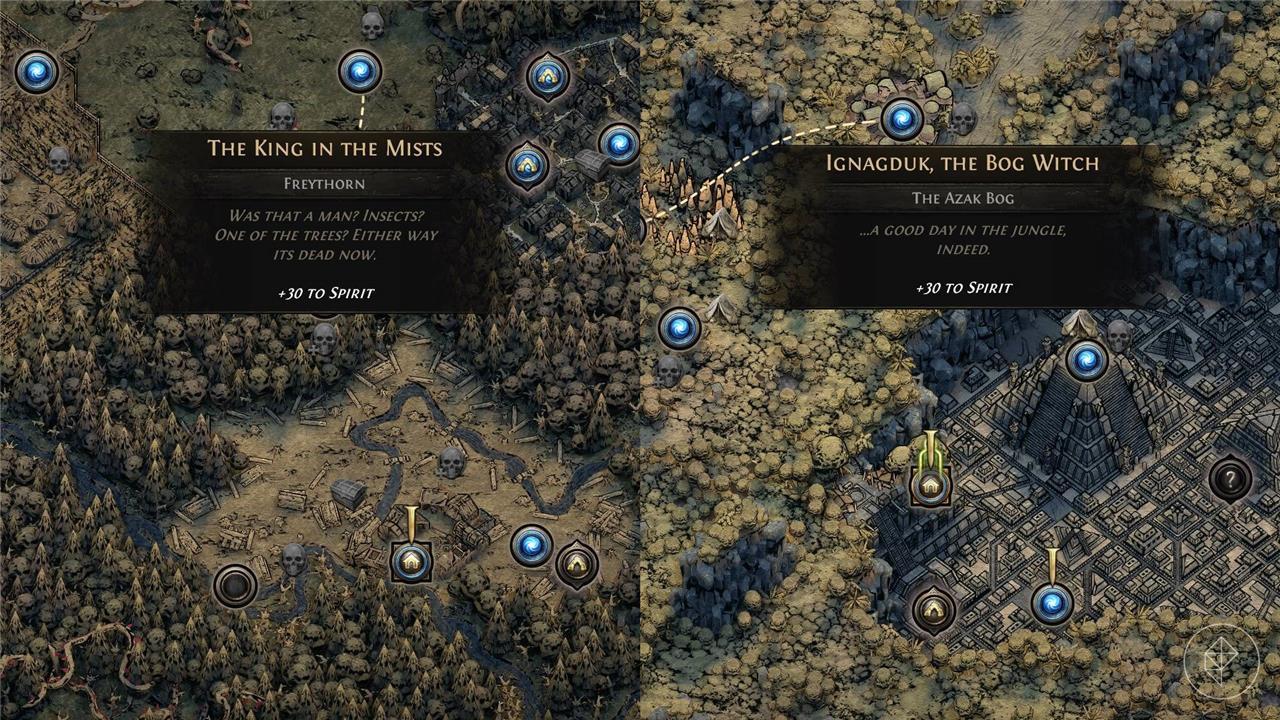 • Progress through the campaign and defeat key bosses: You gain permanent Spirit boosts by defeating bosses such as The King in the Mists (Act 1), Ignagduk the Bog Witch (Acts 3 and 6), which together grant up to 100 Spirit by campaign completion.