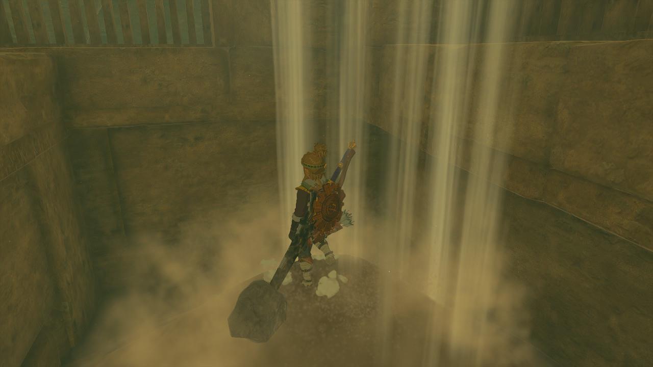 Just above Link’s head in the above shot, you will see what looks like little dimples in the sand. These little sand vortexes are entrances to the Ancient Altar Ruins. Head for the one marked below.