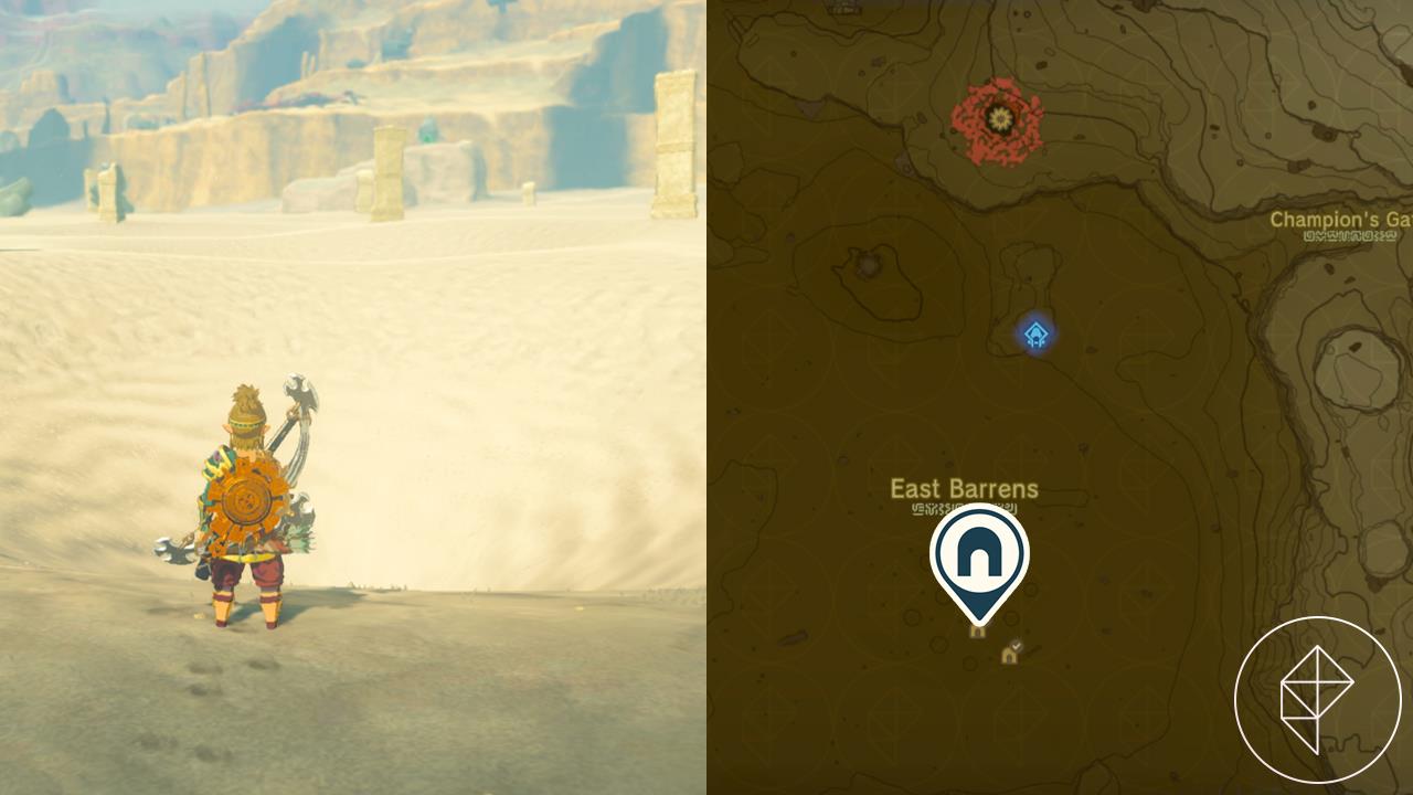 The chest is in Ancient Altar Ruins (Gerudo Desert quicksand pit) at -2472, -3651, 0021 (IGN), -2522, -3737, -0030 (Nintendo Life), or entrance drop at -2525, -3705, 0009/-2525, -3703, 0010.โ