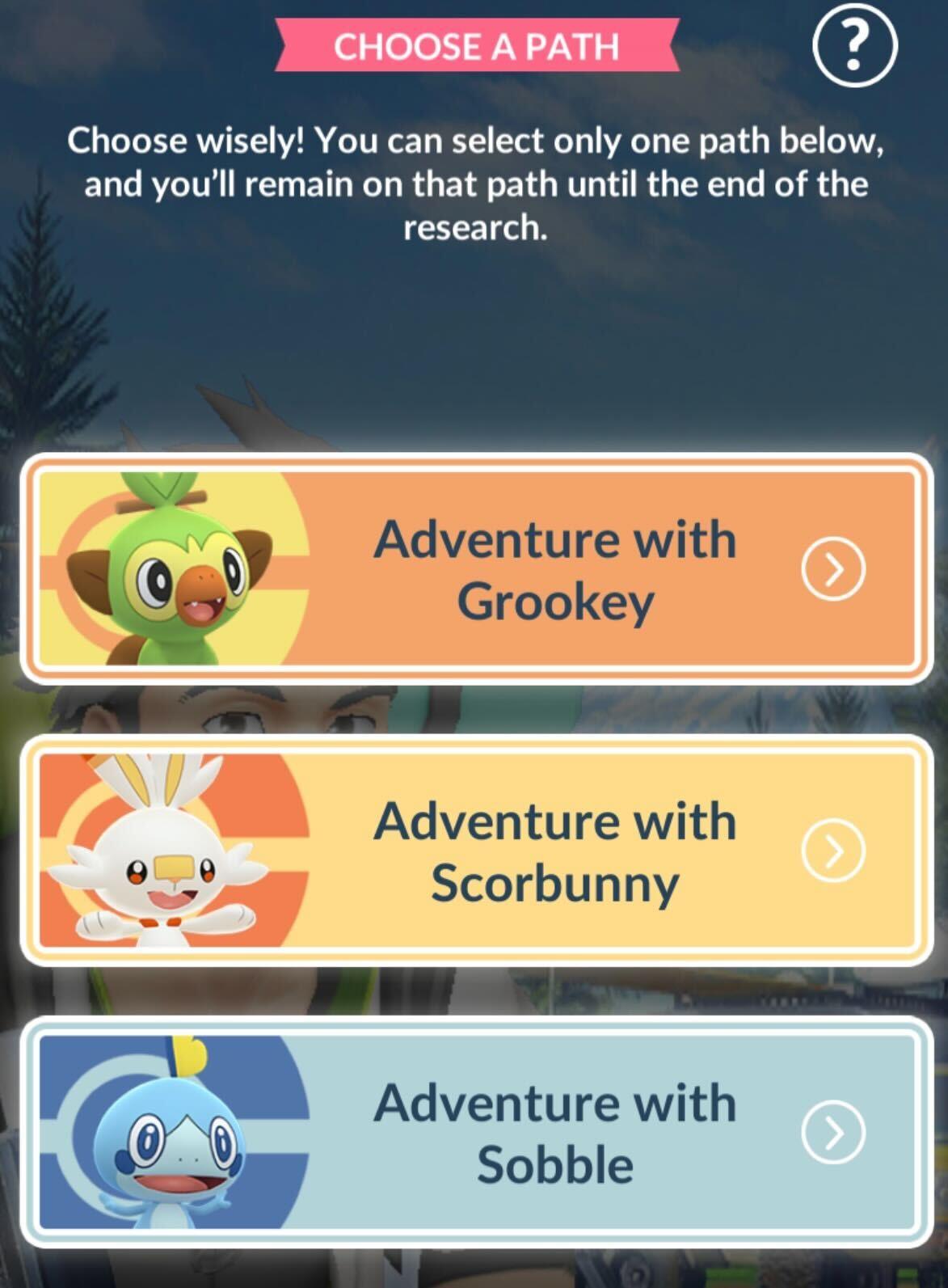 Pokémon Go Galar Calling Choose a Path Quest Grookey Scorbunny Sobble Options Guide