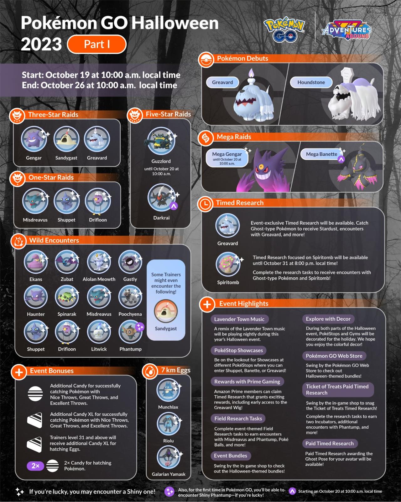 | Misdreavus | Greavard | Darkrai (from Oct. 20 at 10 a.m.) | Mega Banette (from Oct. 20 at 10 a.m.) |