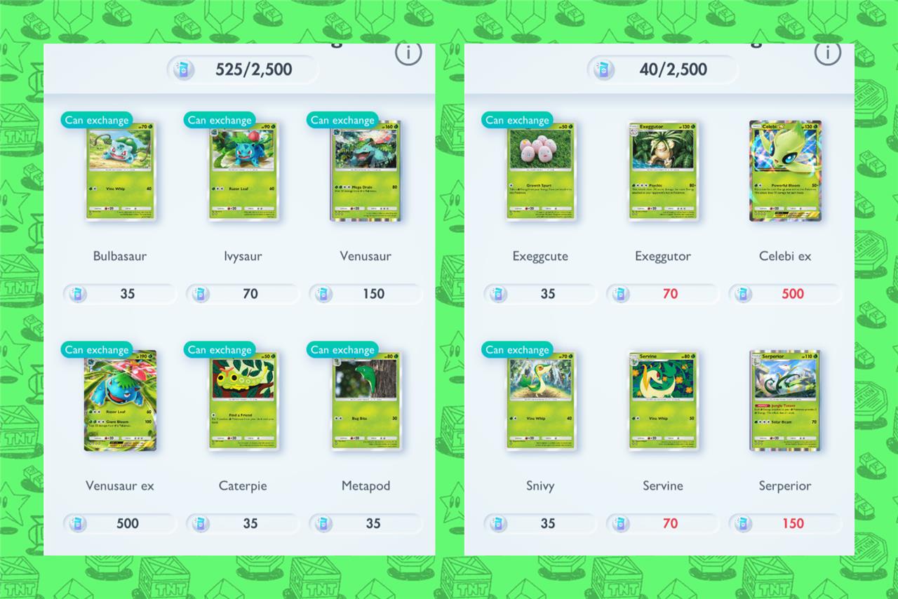 That said, pack points do not apply to all booster packs in TCG Packet. Pack points are only applicable for the expansion you earned them from. For instance, if you open any of the three booster packs in the Genetic Apex expansion, you’ll be be able exchange them for Genetic Apex cards, but won’t be able to use them to buy cards from the Mythical Island expansion. Conversely, you can’t exchange pack points earned from opening the Mythical Island expansion’s booster packs for cards from the Genetic Apex expansion.