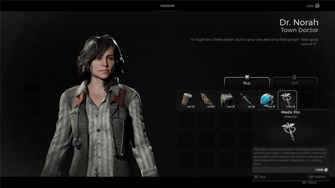 If you didn’t pick the Medic class to start Remnant 2, you can unlock it by picking up the Medic Pin in Ward 13. Go up and talk to Dr. Norah, who is in the makeshift medical tent in the Ward. Look at her wares and buy the Medic Pin for 1,500 Scrap. Take the Medic Pin to Wallace and pay to upgrade it into the Caduceus Idol Engram. This item will allow you to equip the Medic class to either your prime or secondary archetype slots.