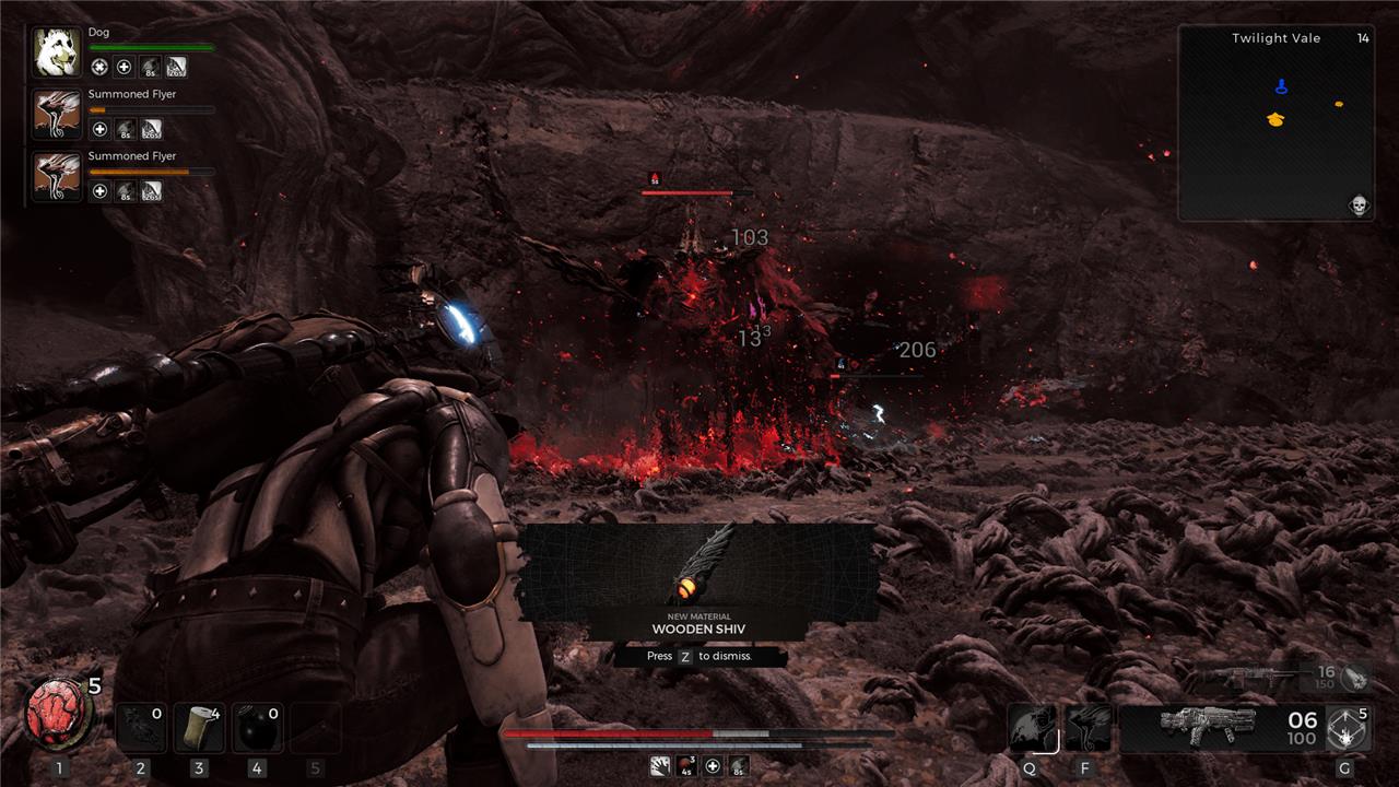 Using the Walker’s Dream will teleport you to a different dimension in the same area. Walk back to the open space and you’ll find that the dead body is not only alive, but that it’s a boss called Bane. Bane is very easy to kill, although it is surrounded by much harder enemies. Focus down Bane as quickly as you can and it will drop the Wooden Shiv. Once you have it, you can either clear the rest of the critters or die, it doesn’t matter.
