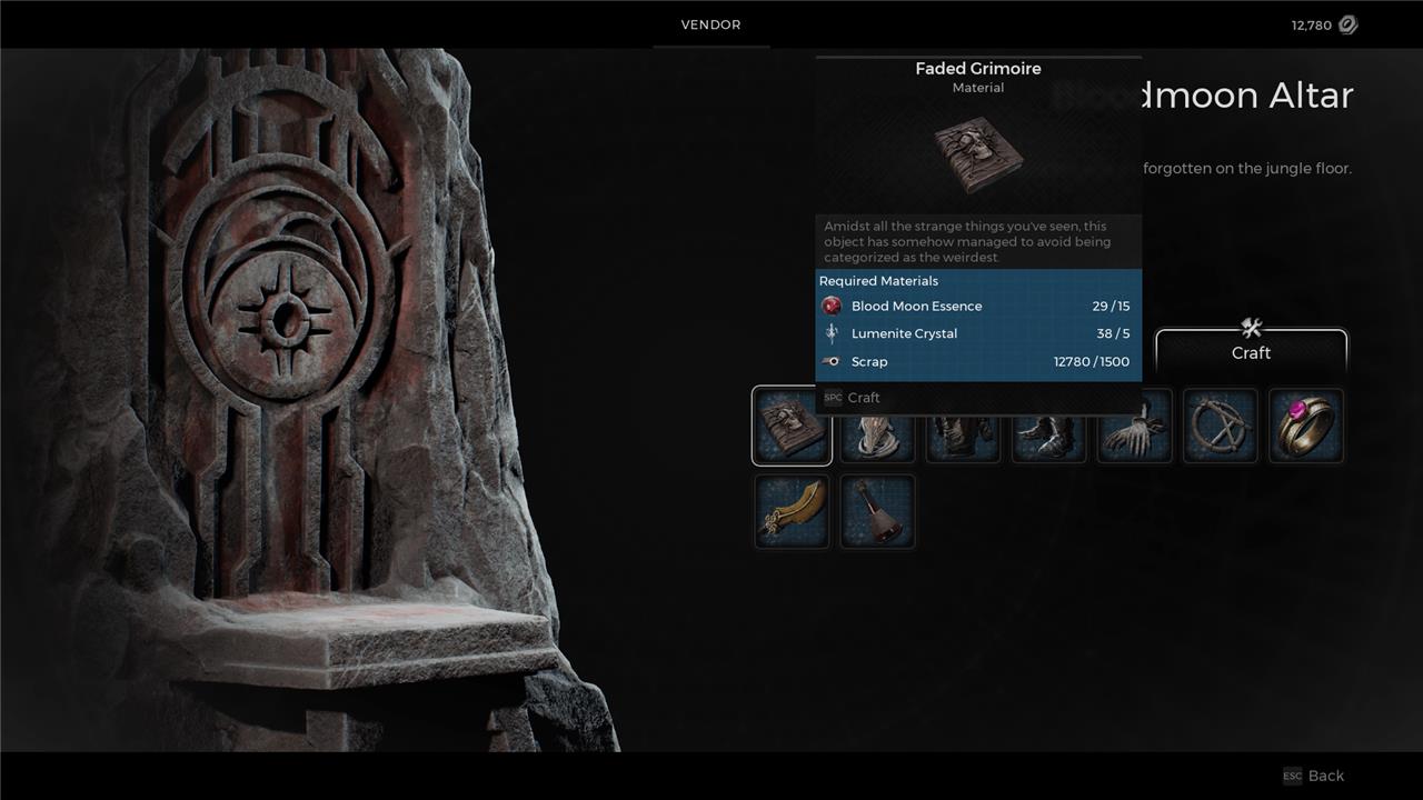 The Summoner is another of Remnant 2‘s secret archetypes, and it’s a bit of a pain in the ass to get. You’ll find it in Yaesha, the jungle world. As you progress through the world’s story, you’ll find a Bloodmoon Altar shop, which just looks like an NPC on the map. This Bloodmoon Altar sells the Faded Grimoire item for 15 Blood Moon Essence, and you’ll need to buy that book if you want to become a Summoner.