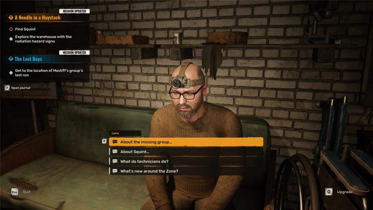 While interacting with Lens, hit the button prompt in the lower right corner to enter his upgrade menu. Here you can pay to upgrade your gear, but you can also pay him to repair it. The cost of repairs escalates more and more as your items break, so it’s best to visit a technician regularly to keep one item from becoming too expensive to ever reasonably recover.