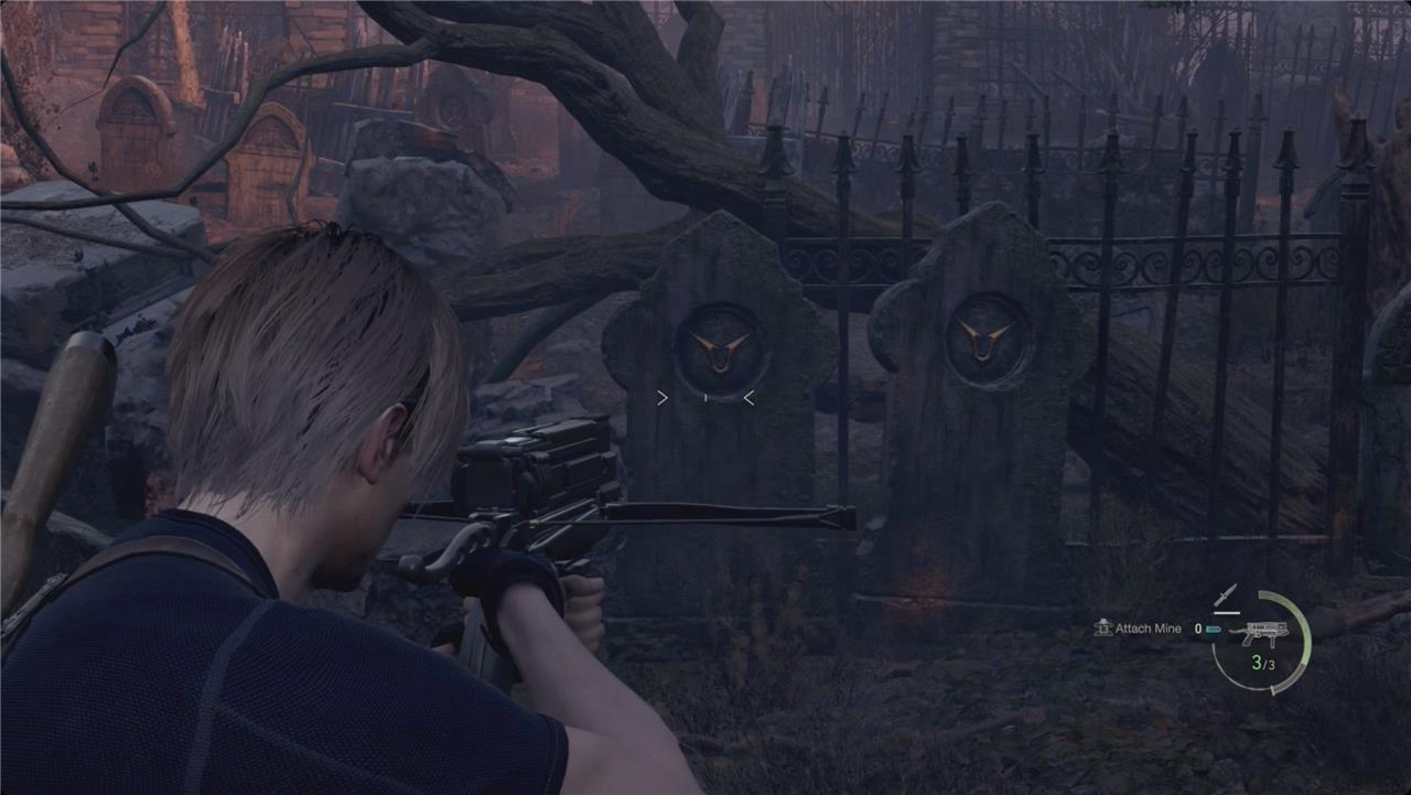 As you’re heading to the church, you’ll come across a graveyard with a few enemies around. All tombstones have an engraved emblem that you can destroy.