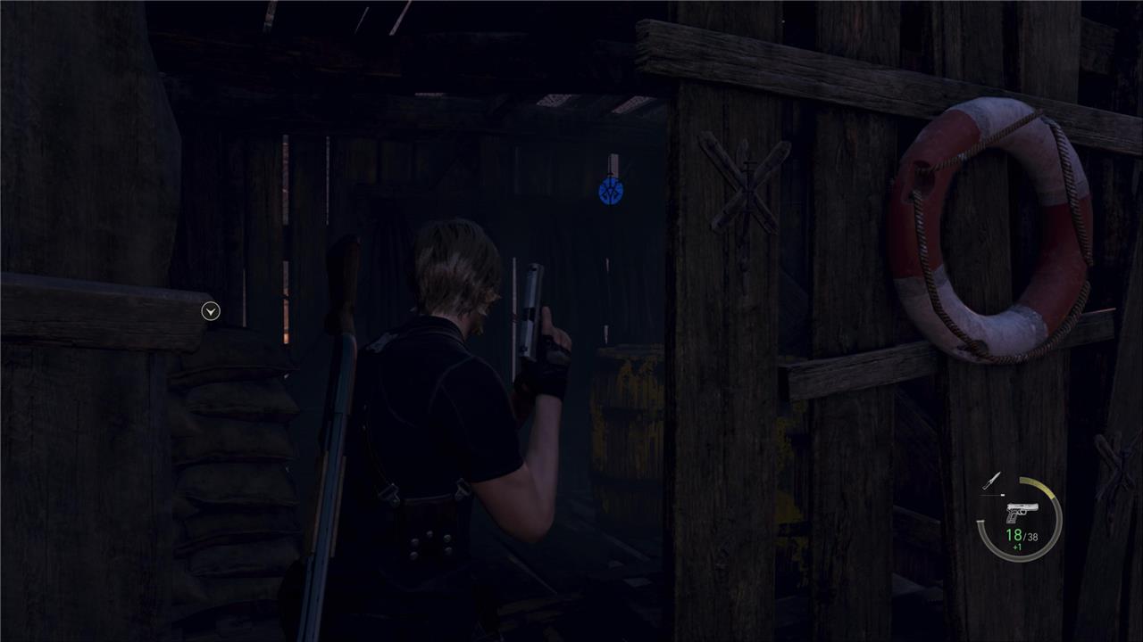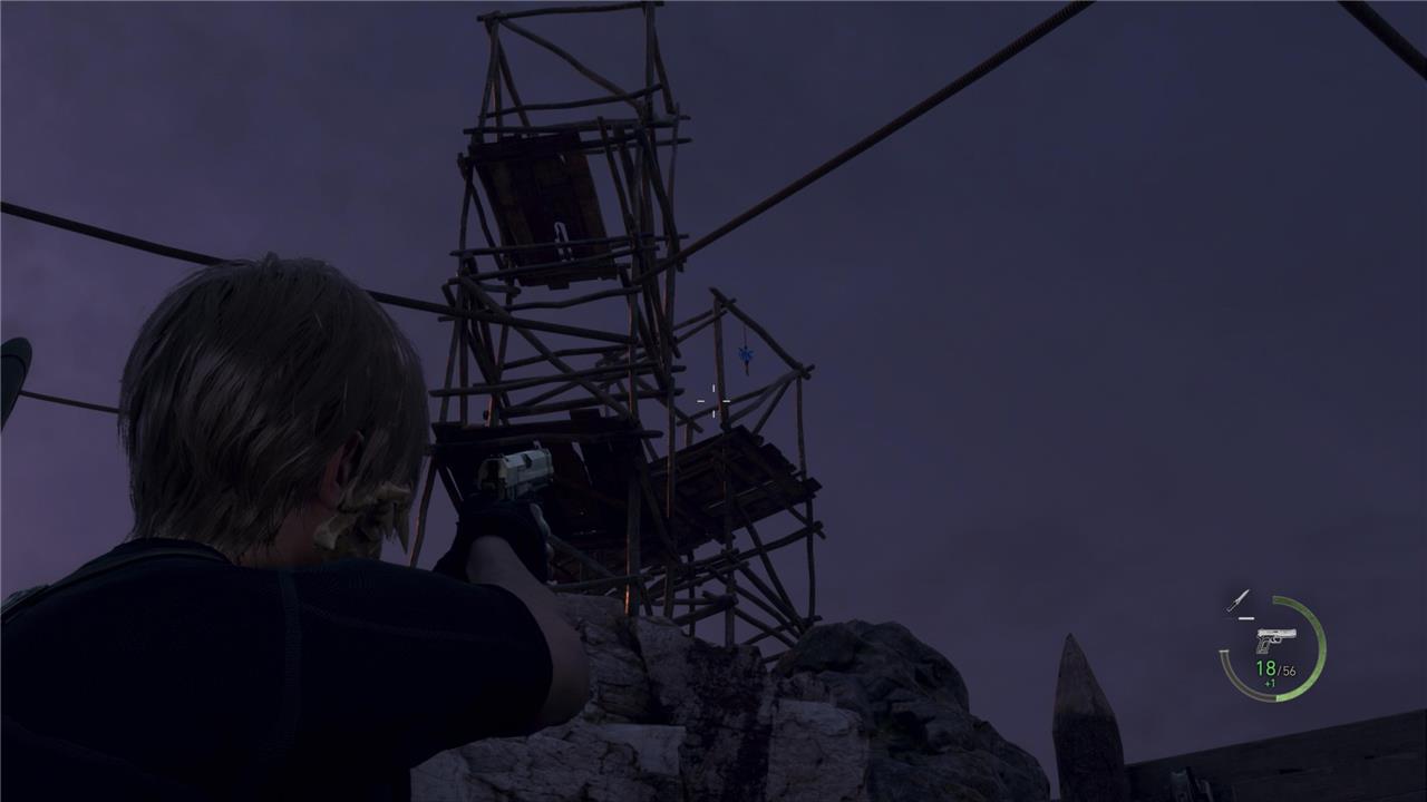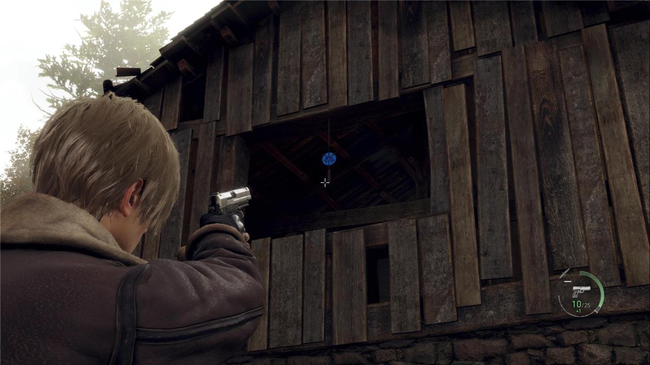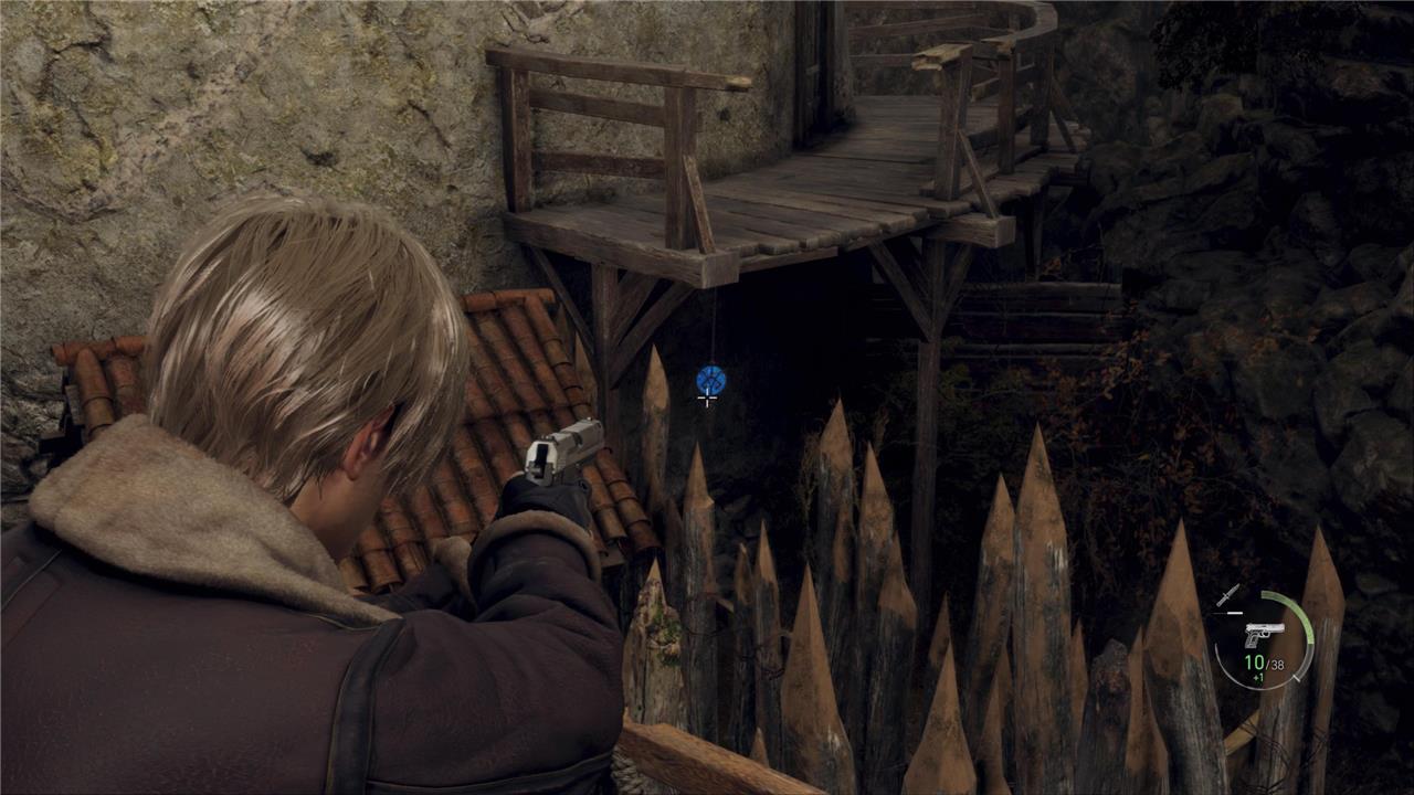The first Blue Medallion request in the Resident Evil 4 remake takes place on the farm area shortly after Leon’s encounter with the village. Six medallions are scattered around the barns and animal pens. You can spot one hanging on the windmill, another above the barn door, one under the bridge near the well, and others on the sheds and watchtower. Shooting all six completes the request, allowing players to turn it in at the Merchant for Spinels and other rewards.