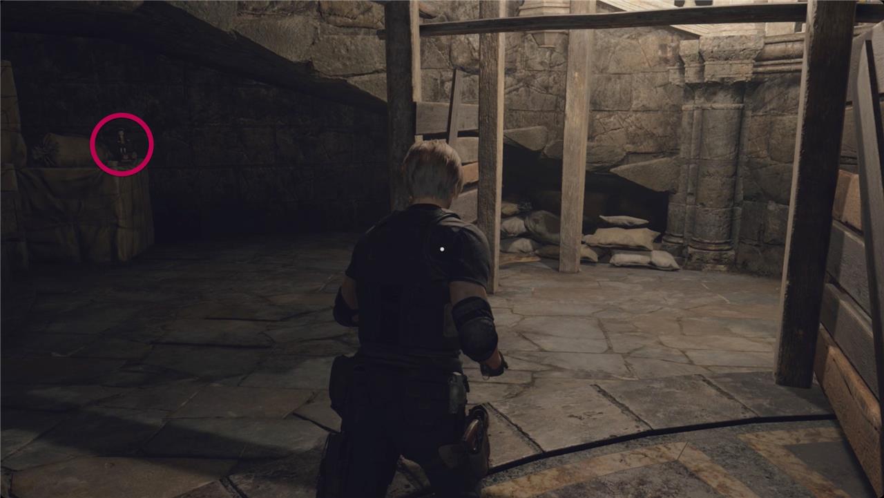 Deal with the zealots who attack after. Before you take the stairs, sweep the ground floor for three barrels with handgun ammo and pesetas. Duck behind the wall in the southwest to find a chest with a gold bar inside.
