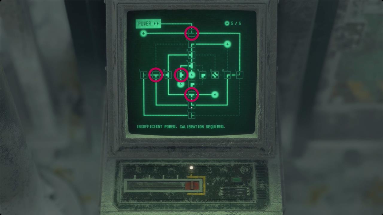 Head back out and all the way to the north to find the Electronic Lock Terminal. You need to adjust three rings of junctions to get power to both a node in the center and a node in the lower left.