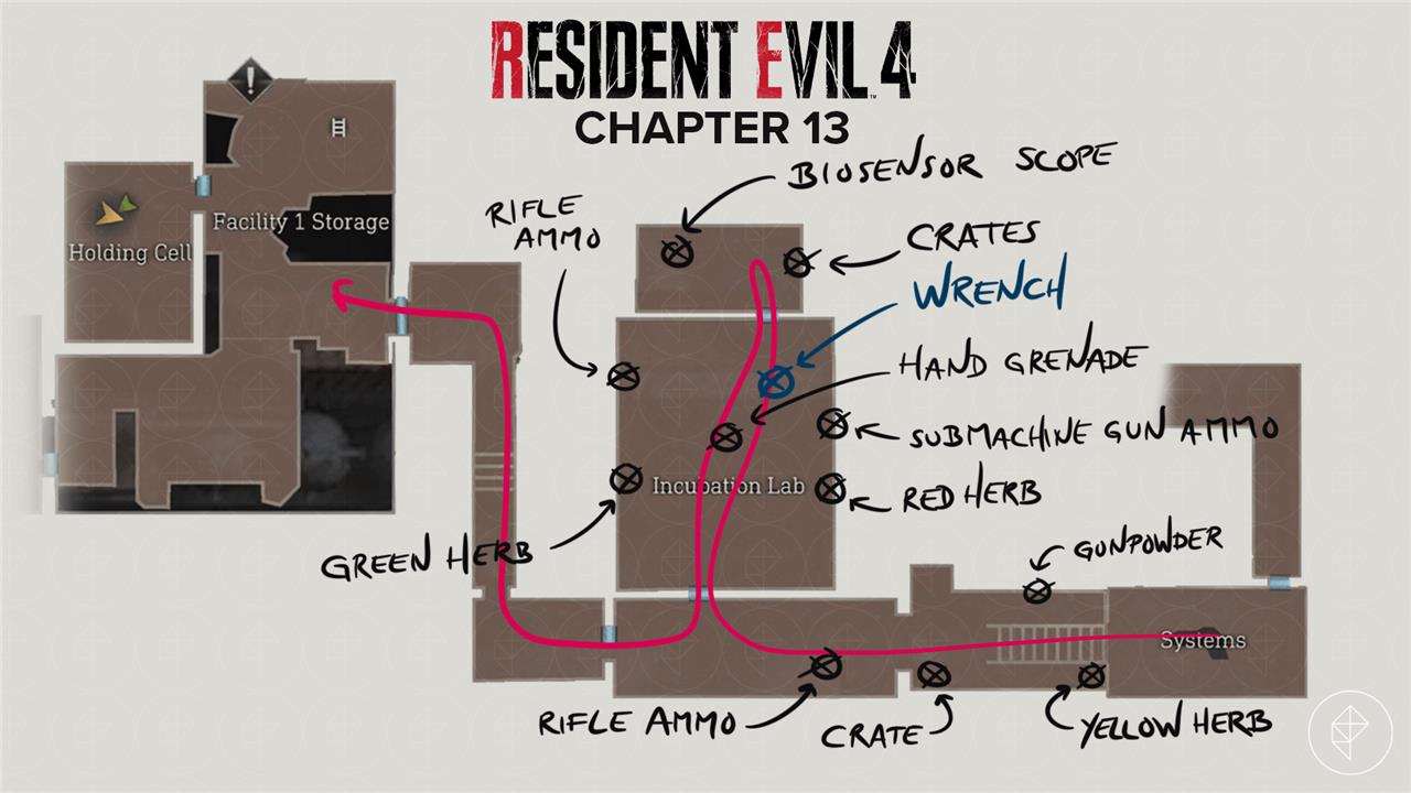 Our Resident Evil 4 remake Chapter 13 walkthrough will make sure you don’t miss any items from the beginning of the chapter through the Wharf, Surveillance, Facility Storage, Utilities, Dissection, Freezer, Systems, Incubation Lab, and Holding Cell.