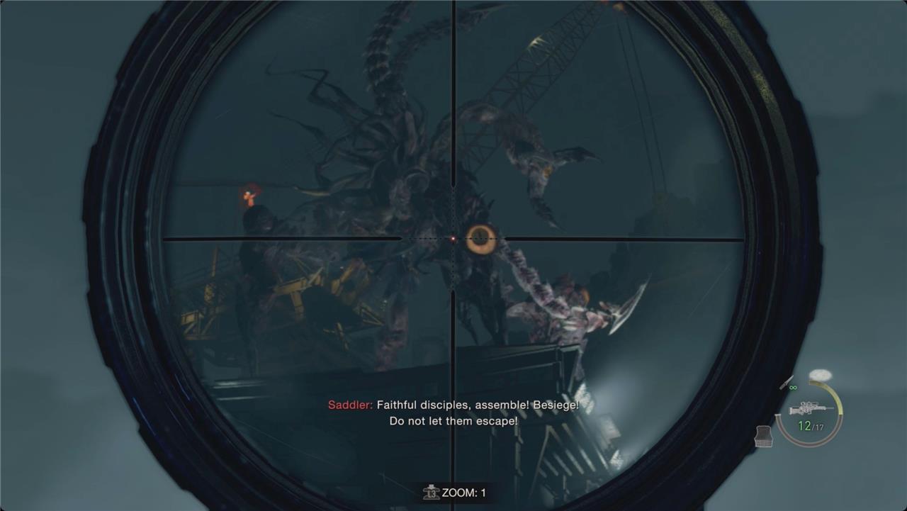 Head outside and to the left. Stop at the binocular vista to spot Ada. Continue left into the elevator. After the cutscene (which brings the life-saving tally to three for Ada and one for Leon), you’ll have to face off against the mutated Osmund Saddler.