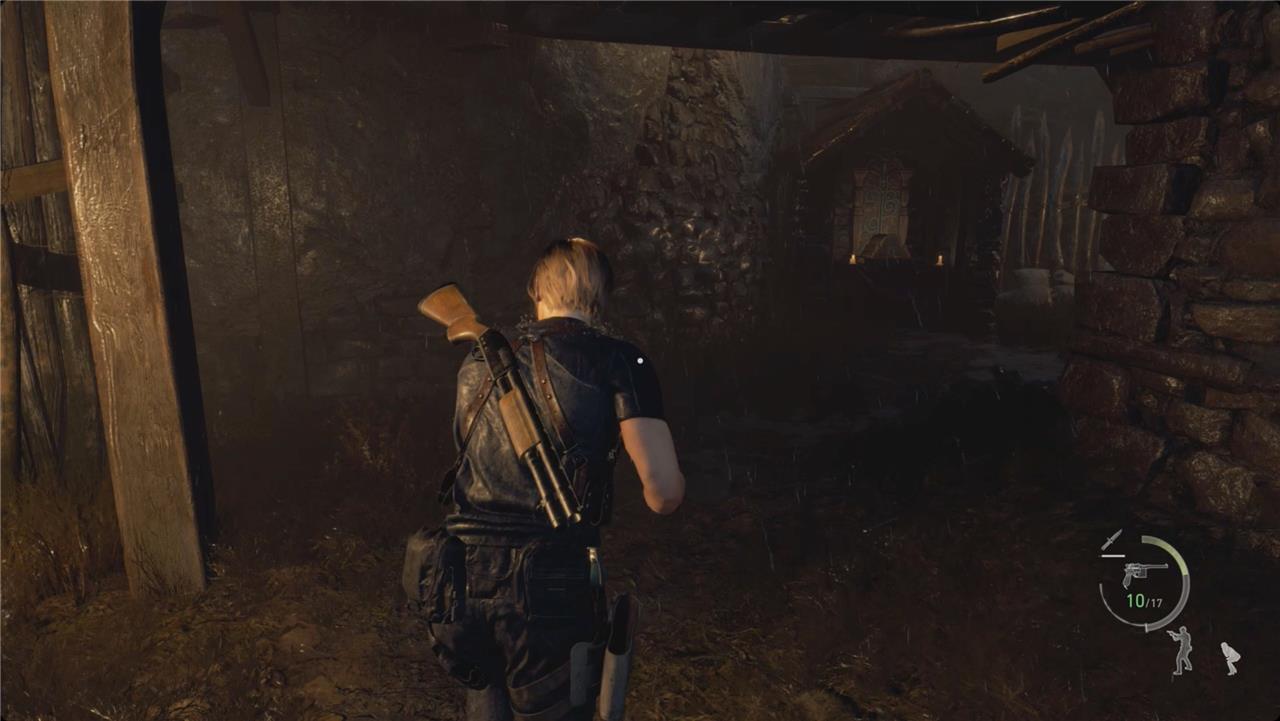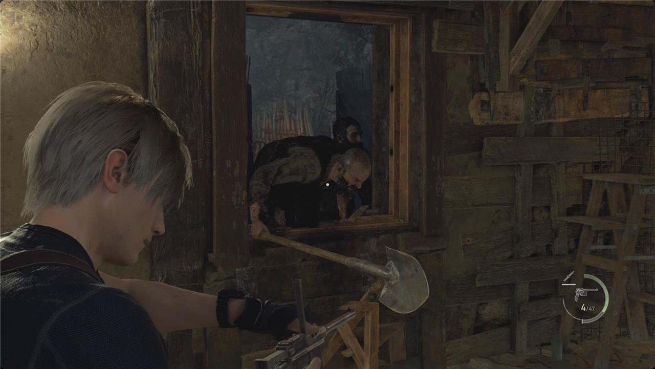Back outside, head left and follow the walkway all the way around. Give Ashley a boost, and she’ll kick down the ladder for you. In the attic, smash any barrels you see for attachable mines, handgun ammo, shotgun shells, and pesetas. Once you’ve grabbed everything, jump out of the window.