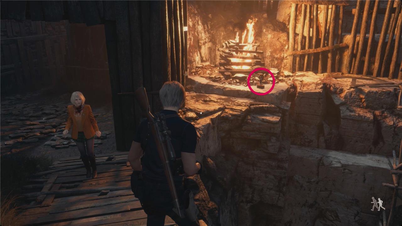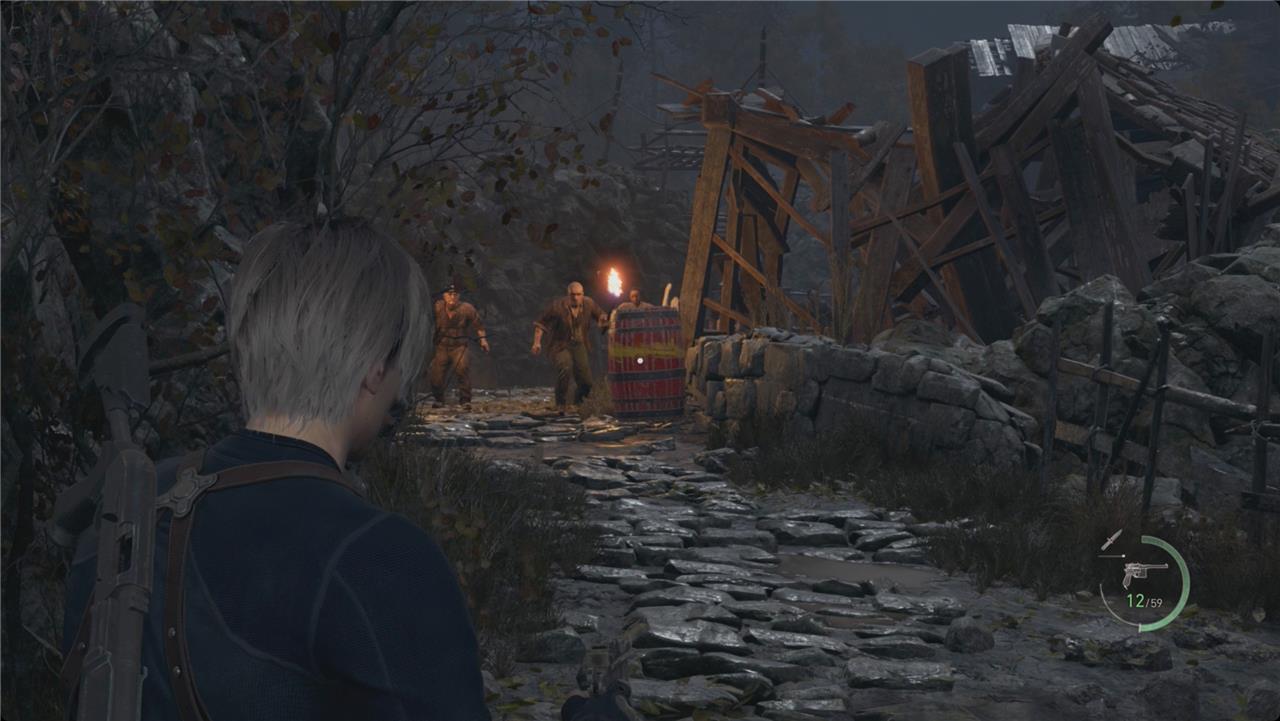 After defeating Mendez, Leon must push forward through the ruins toward the checkpoint while evading remaining Ganados. The area is dense with enemies carrying dynamite and crossbows, so move carefully between cover and make use of explosive barrels. Prepare for an ambush by the Chainsaw Sisters in the arena ahead; use the environment’s ladders, traps, and grenades to separate and control them. Once they’re defeated, search the area for supplies before advancing to the checkpoint to leave the village behind.