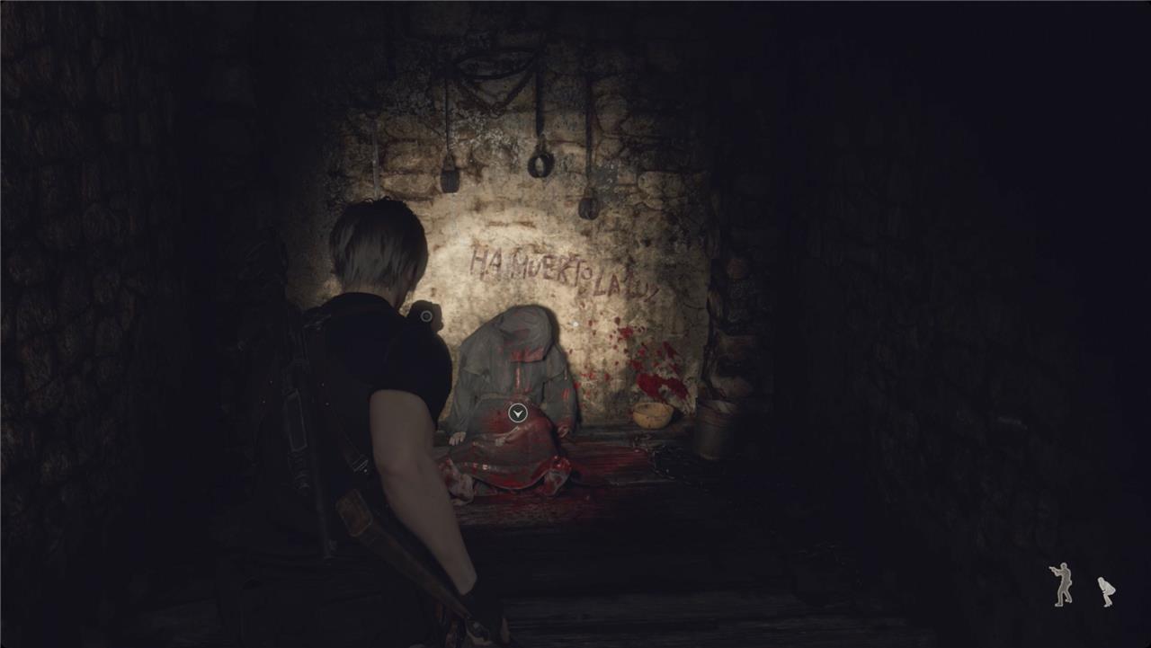 Keep walking toward the horrifying sounds to the right because Leon’s never seen a horror movie before. The corpse against the wall has the Dungeon Key. When you turn around, you’ll fall through the floor and meet the friendly man in the basement named Garrador.