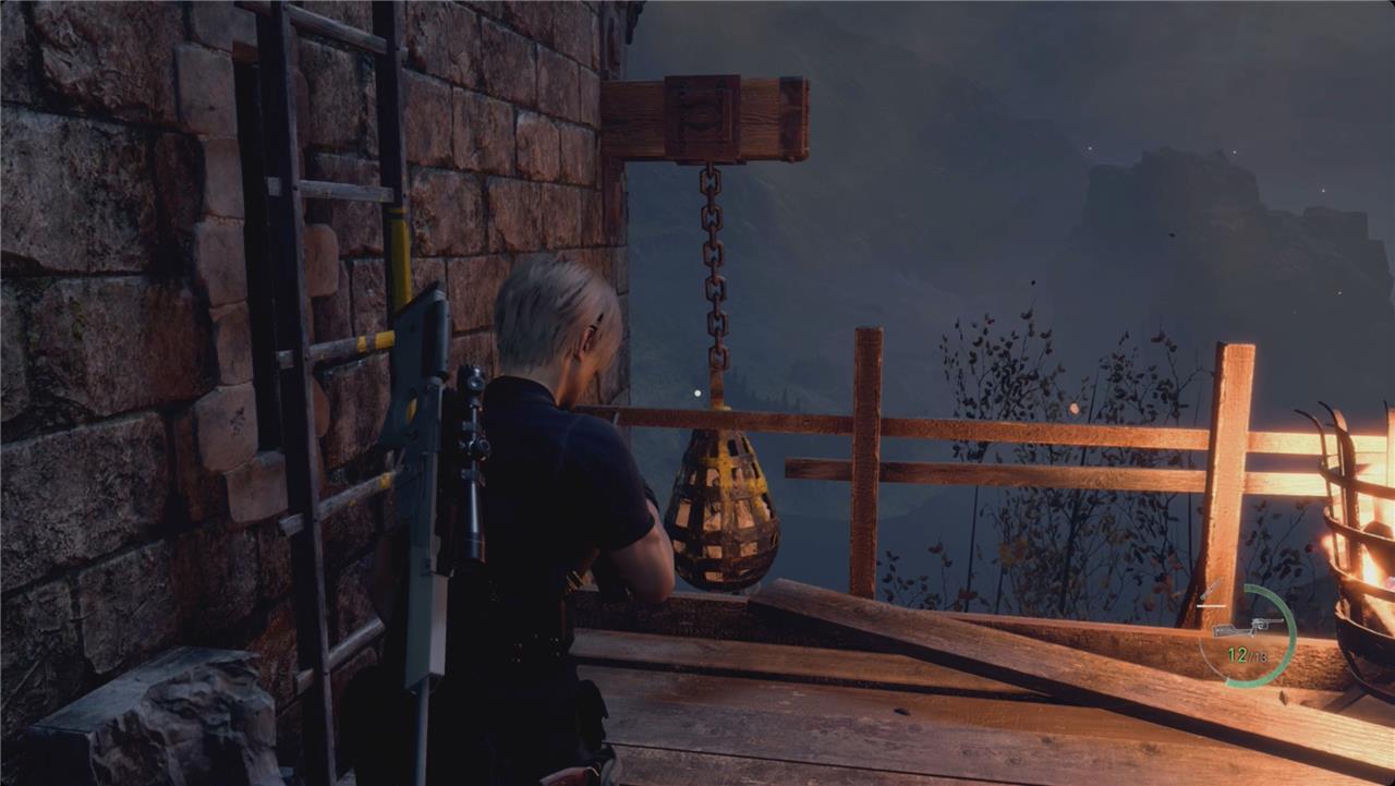 Head to the main plaza after the knight fight and spot Ashley atop the highest tower. Climb the ladders on the left side to reach the upper walkway, then cross the wooden bridge while fending off attacking Ganados. Once there, grab her and carry her down safely to continue the chapter.