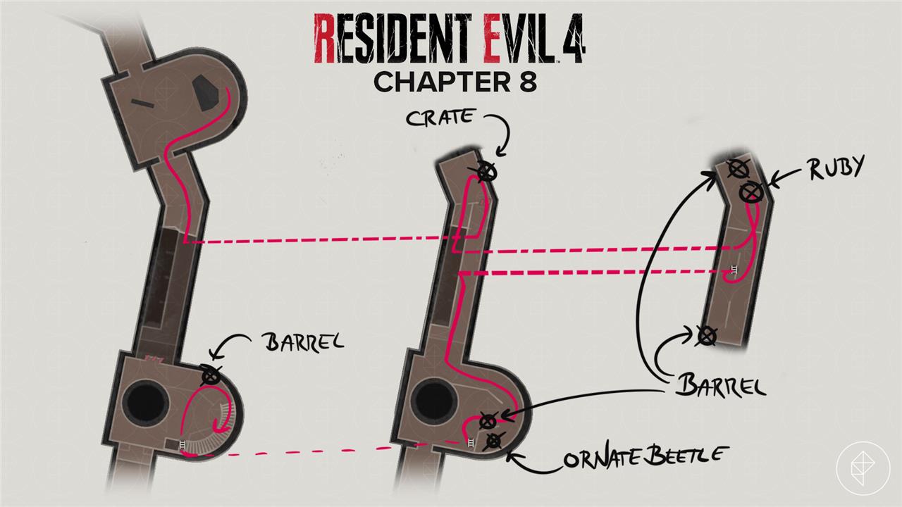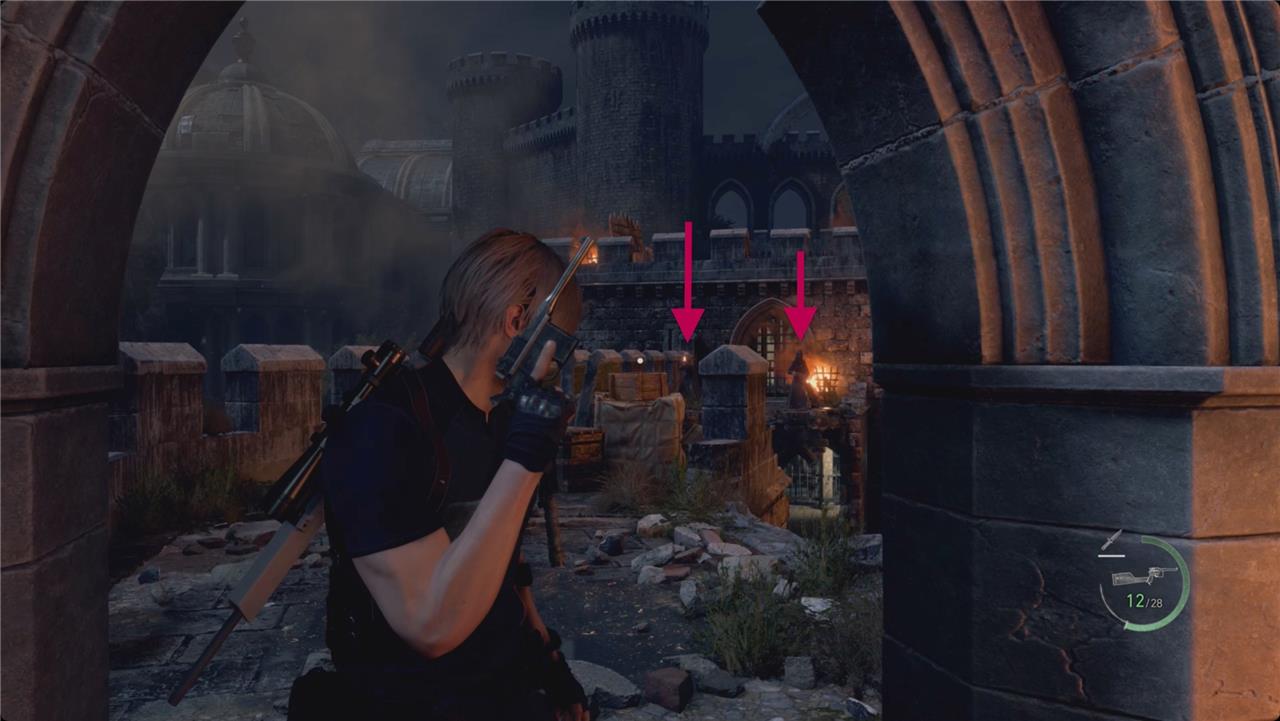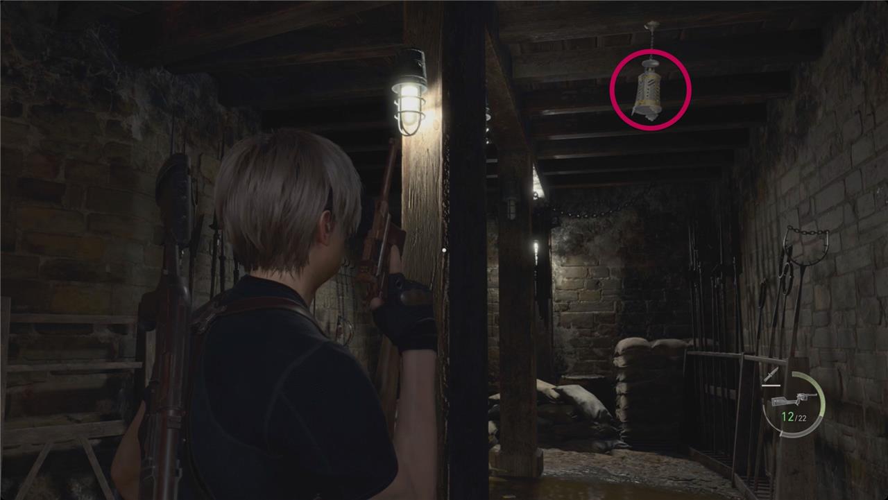 The Wine Cellar is a dark, narrow section beneath the castle where Leon faces waves of zealous cultists in close quarters. Visibility is low, and torches cast long shadows that can hide enemies until they’re almost upon you. Use the shotgun or flash grenades to manage groups efficiently and keep an eye out for traps along the floor. Exploring thoroughly rewards you with ammo, treasure, and resources useful for the upcoming Lithograph puzzle.