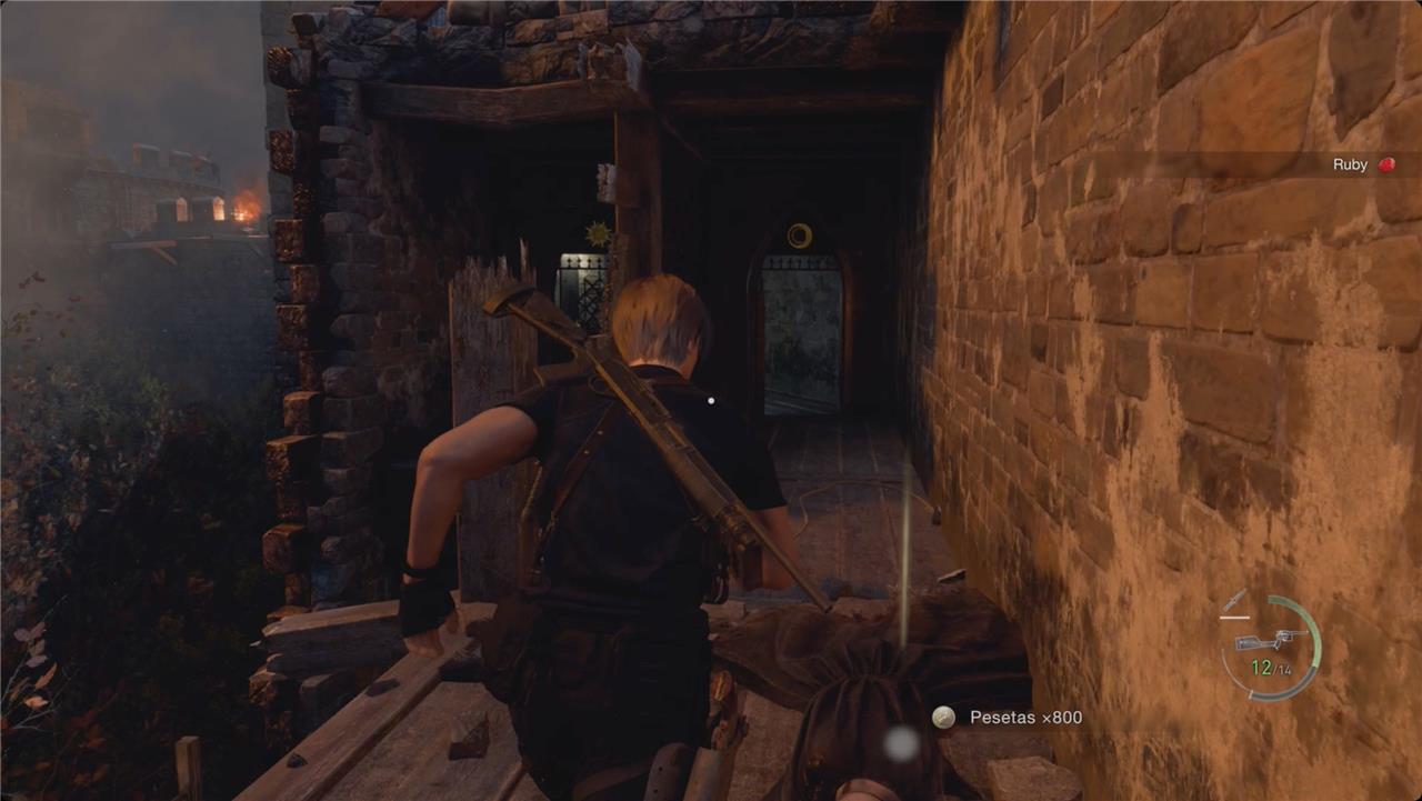 Head back the other way and through the sun door. Look up as you enter to see a lantern with a ruby. Smash the (non-explosive) barrel inside for some pesetas.