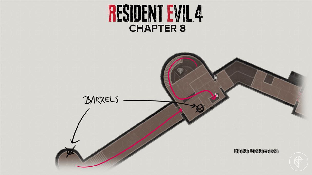 The Armored El Gigante (also called Armored El Gigante) in Resident Evil 4 Remake’s Chapter 8 appears on the castle rooftops during the Castle Battlements section.