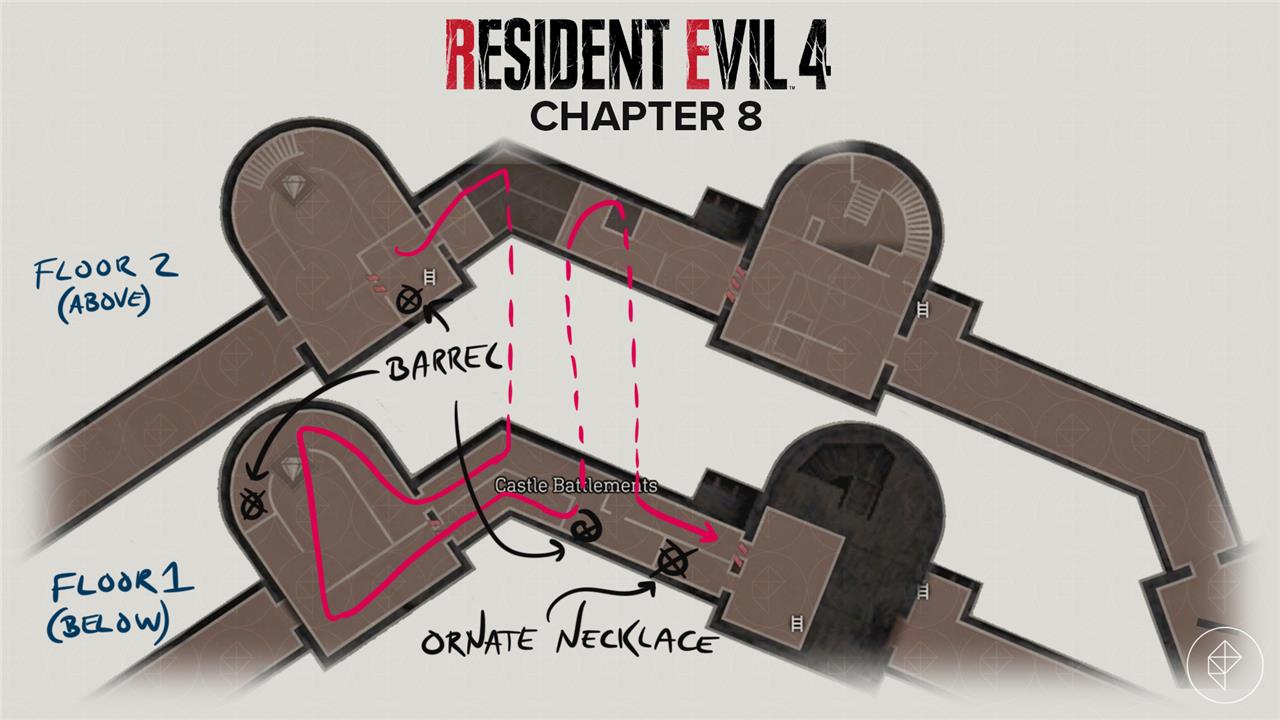 Rain lashes the ancient stone as Leon climbs the castle battlements, where every shadow hides danger and every clang of steel means survival. Between relentless enemy waves and the confounding Lithograph puzzle, this chapter turns the fortress into both a battlefield and a riddle box waiting to be solved.