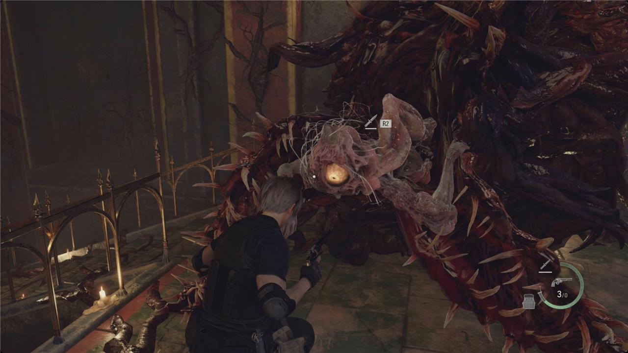Ramon Salazar awaits Leon in the Ancient Chantry, twisted by his union with a monstrous parasite. The battle demands constant movement-avoid his acidic projectiles while targeting the exposed weak spot on his mutated form. Use the arena’s ledges to create space and strike from a distance when he pauses to attack. Flash grenades can momentarily disrupt his assault, giving you a chance for precise shots. Stay calm, watch his patterns, and you’ll end his reign in the castle once and for all.