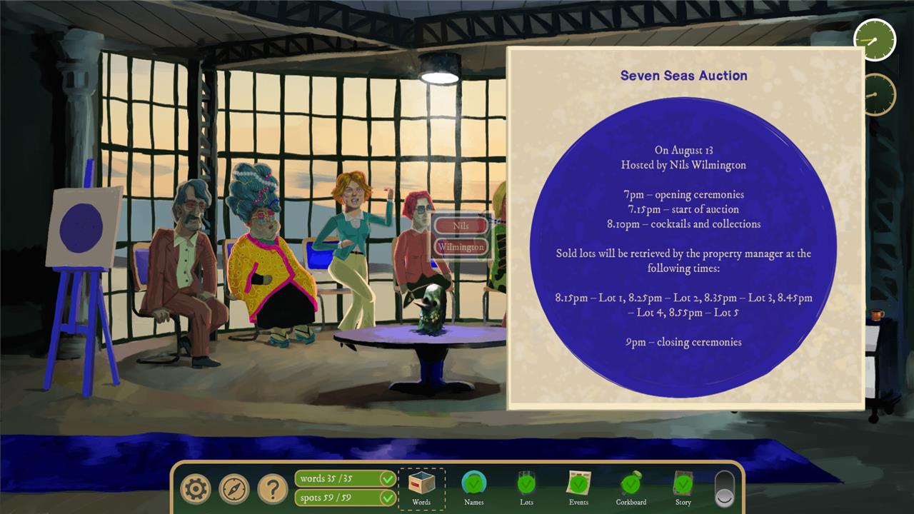 In the “Going Once!” case of Rise of the Golden Idol, players must identify eight key characters involved in the auction house mystery. These names, which include Oriel Toussaint, Tesa Nevari, Summer Knightly, Aurelia Winston, Moumaati Dasilva, Nils Wilmington, Robbie Froberg, and Erwin Bogart, are uncovered through careful analysis of dialogue, character silhouettes, and items such as drink orders and notes found throughout the scenes. Some names are revealed directly on objects like the auction sign or personalized envelopes, while others become clear by observing interactions and motives during the event timeline.