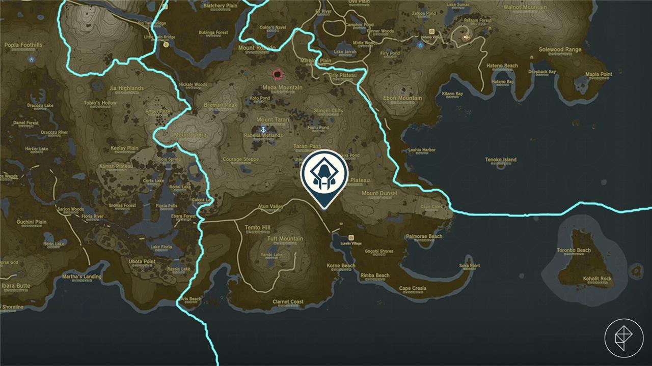 From Lurelin Village, head uphill northwest along the cliffside path; the shrine’s glowing entrance becomes visible atop the ridge. Nearby Lightroot Mimufis in the Depths aligns directly below for fast travel reference.โ€‹