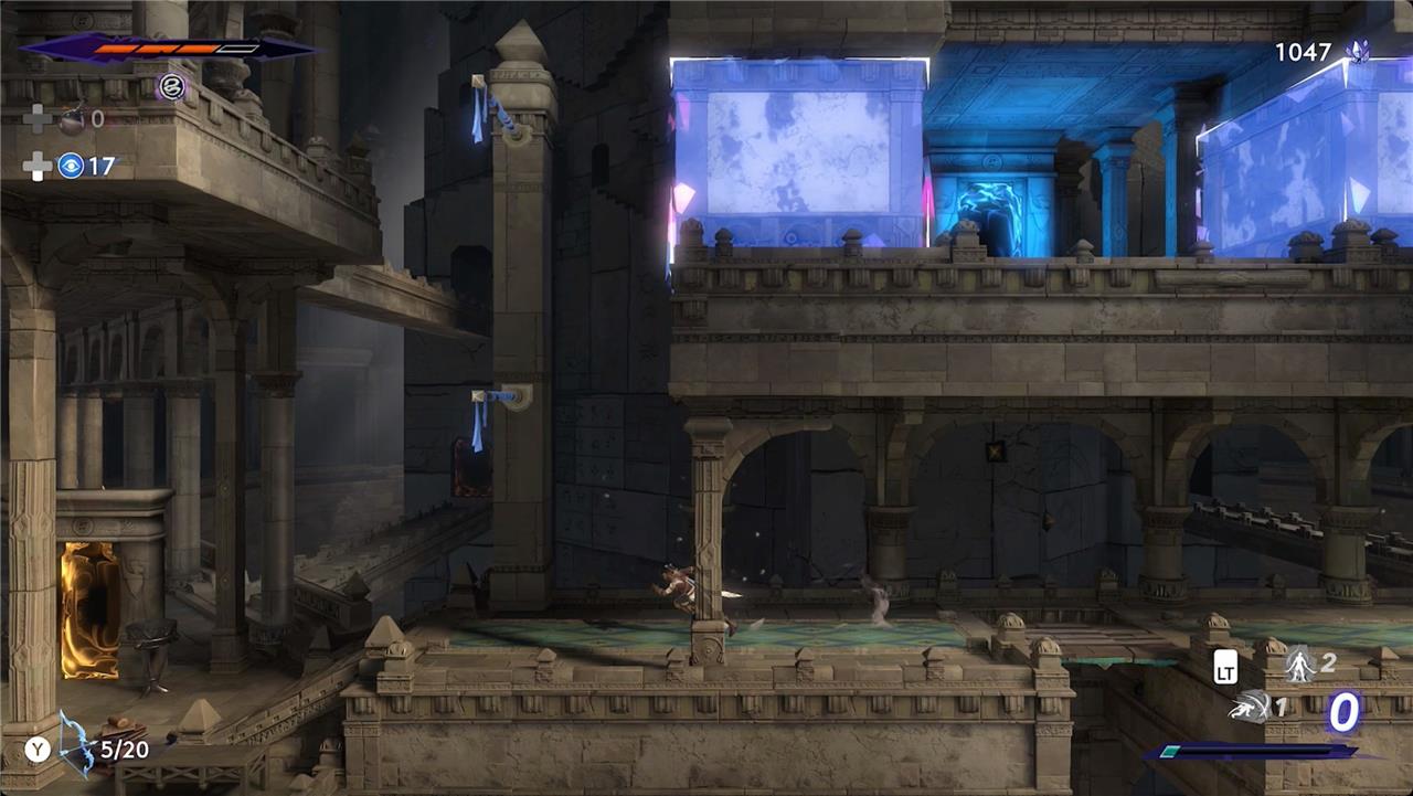 For the top right door puzzle in the Sacred Archives of Prince of Persia: The Lost Crown, you’ll need to use Sargon’s time powers and careful coordination between your shadow clones. Begin the first round by quickly heading to the lower floor, dashing right to the emerging platform, and activating your Shadow of the Simurgh to leave a clone there. Step on the floor plate and remain until the timer ends. In the second round, move to the lower chamber, wait for the platform, then ascend and pull the lever to create a new wall. In the final round, time your use of Shadow of the Simurgh to teleport onto the ledge once the platform appears, then wall-jump to the top to claim your reward. This puzzle requires precise timing and clever use of both your clones and the environment.