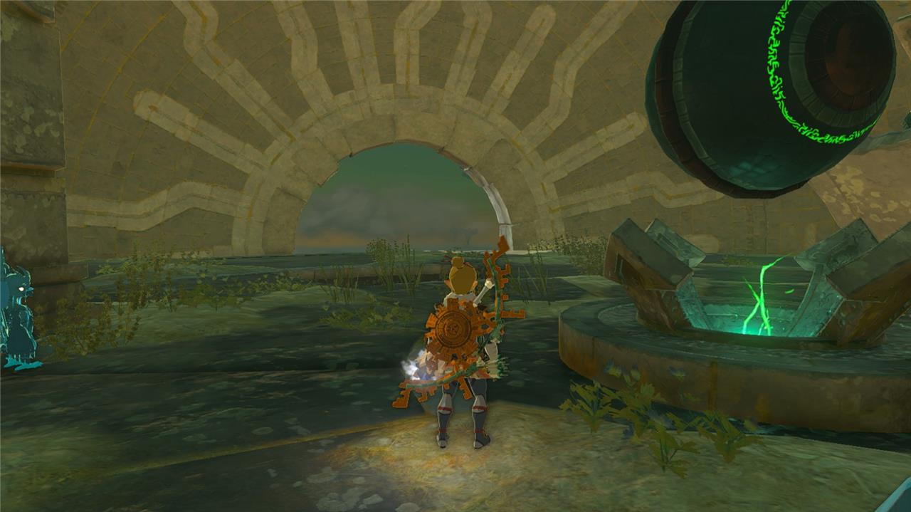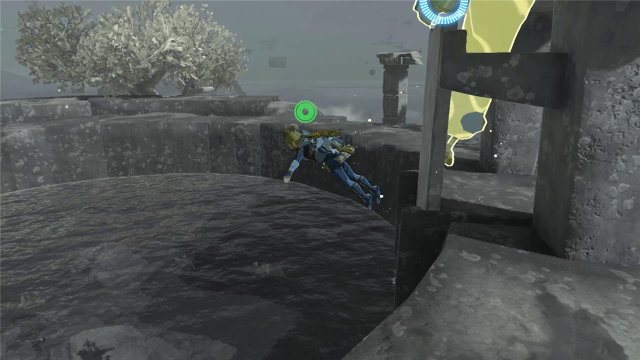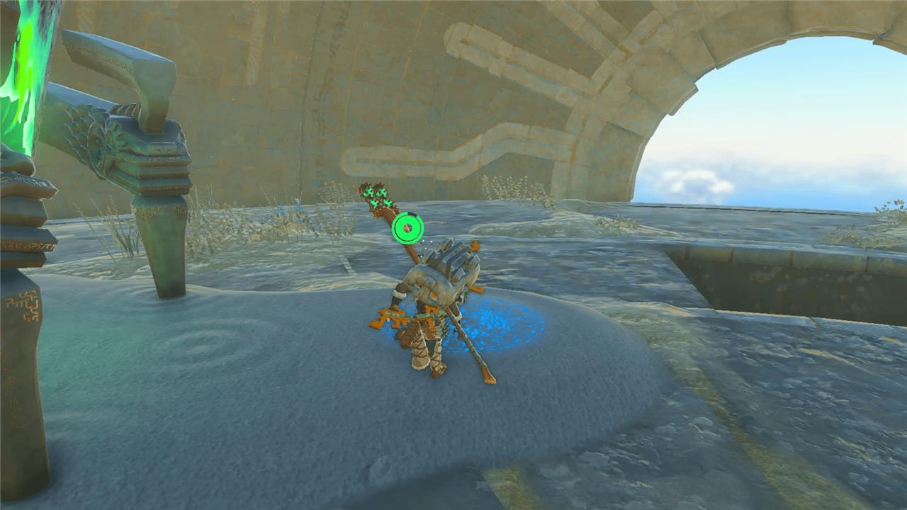 This one is, again, on the bottom half of an orb-shaped structure. Ultrahand the ball device in the middle so that the opening circle is a semi-circle as shown below. Once it’s in this position, jump out of the hole and U-turn (with your paraglider) back into the bottom part of the orb to claim the Sage’s Will.