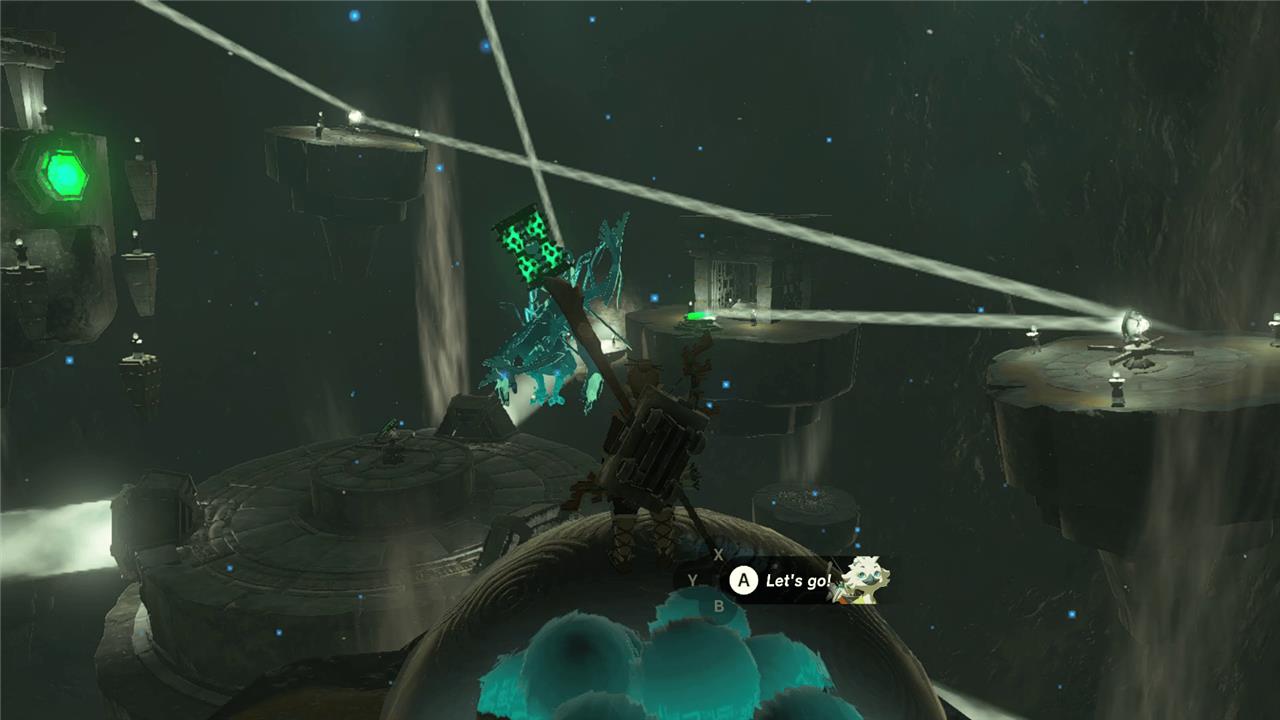 If you don’t have any spare mirrors in a capsule, Ascend up to the middle floor to grab some and drop them down to the bottom floor. (But be careful to not just throw them off the sky island entirely.)
