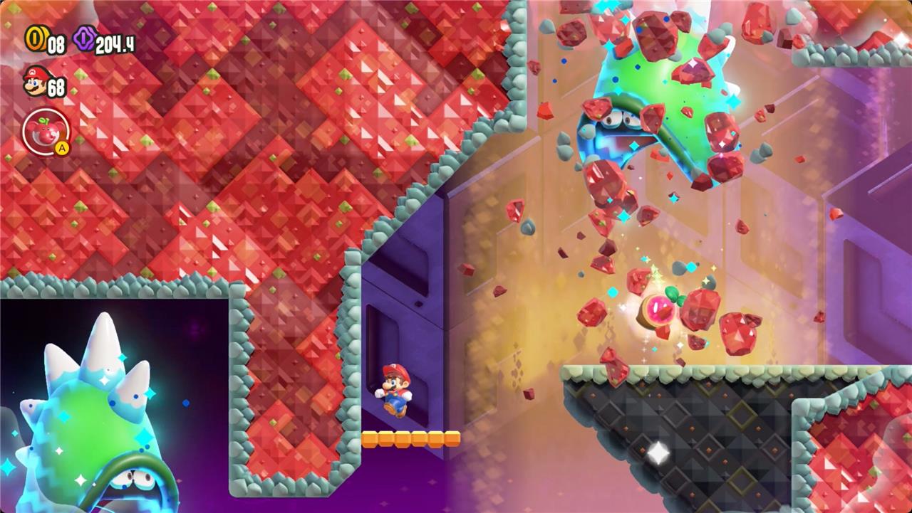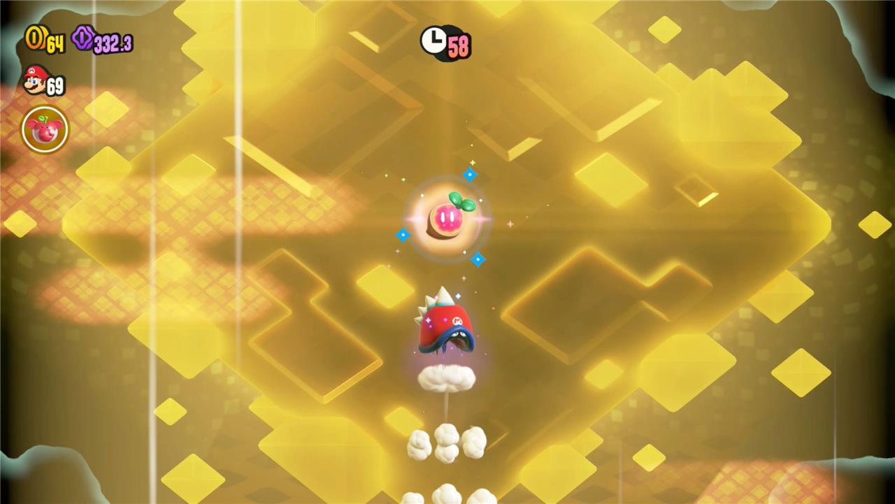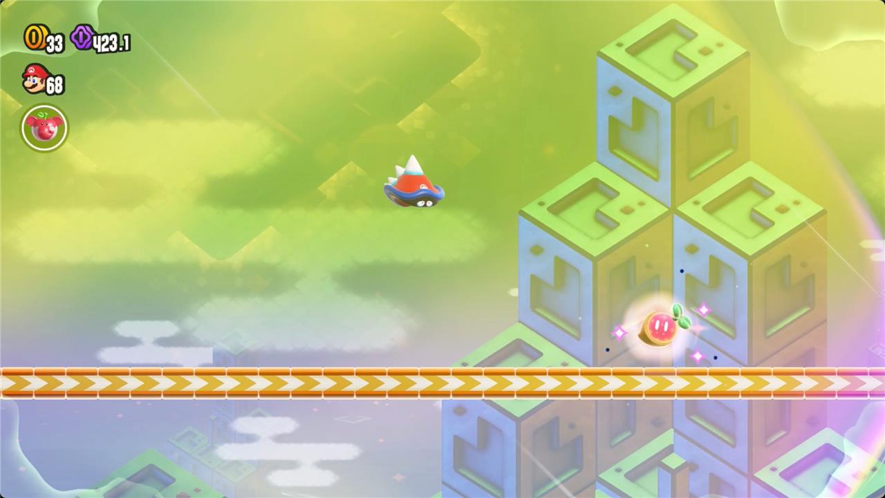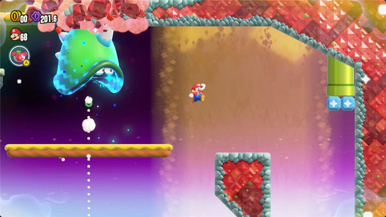 Most levels will have a Wonder Flower to collect. This special flower triggers a trippy reframing of the current level – sometimes the gravity disappears or you enter a twilight realm or multihued bubbles will carry you into the sky. Many of the Wonder Flower sequences end with a Wonder Seed.