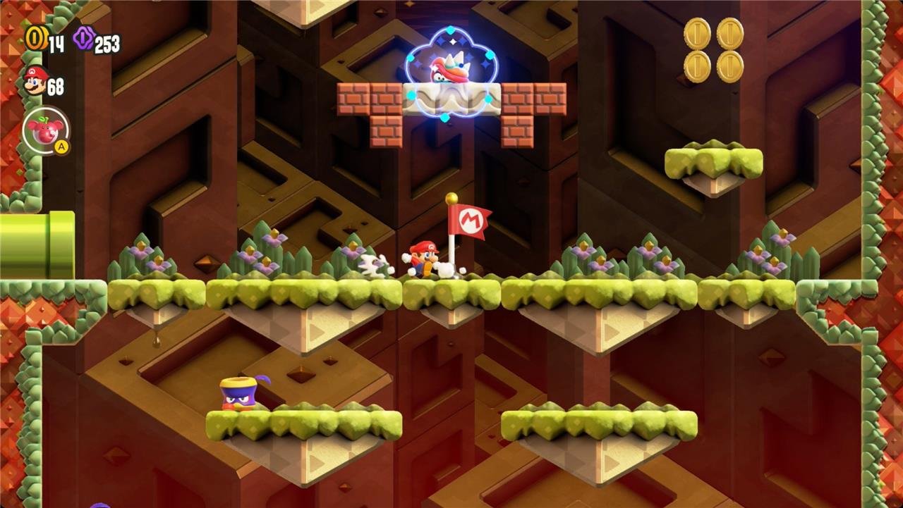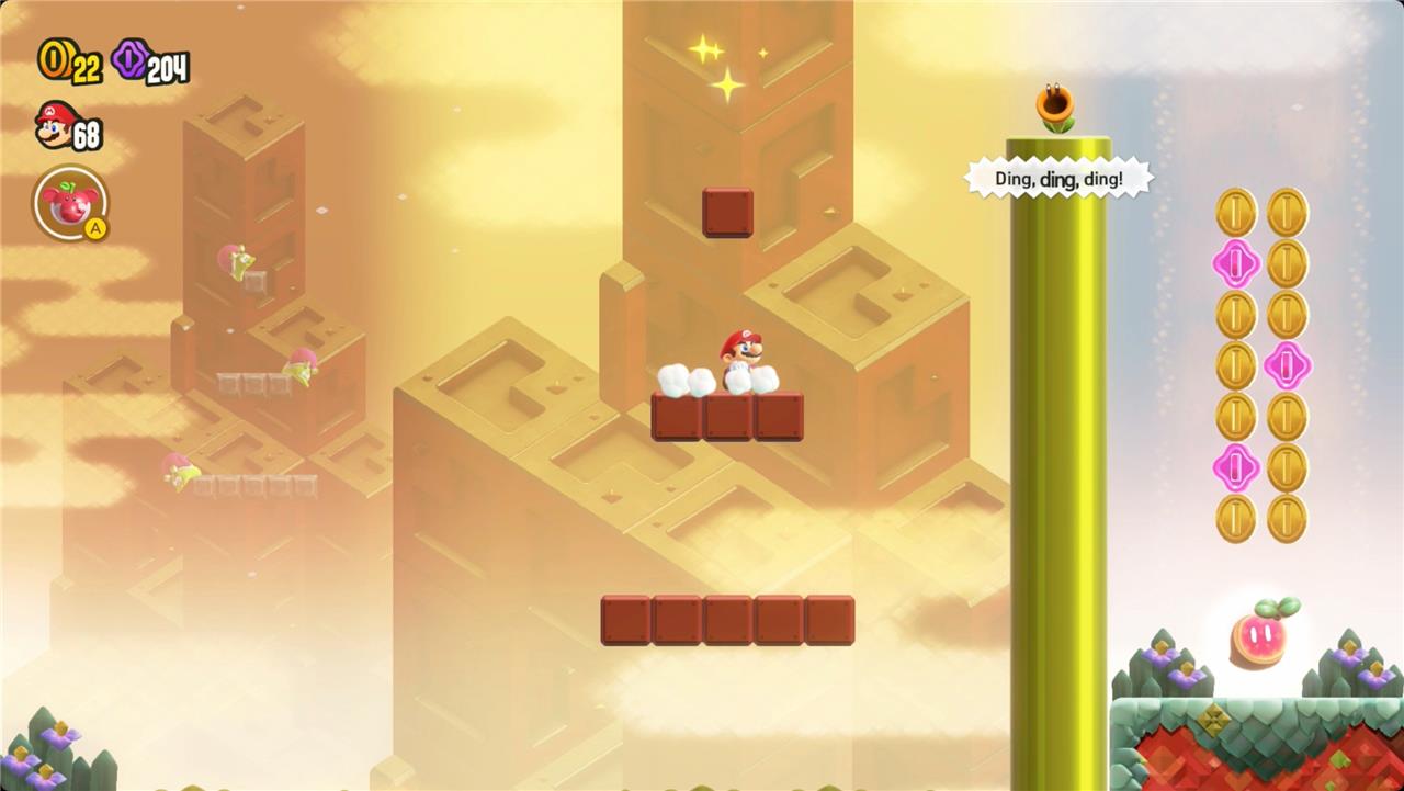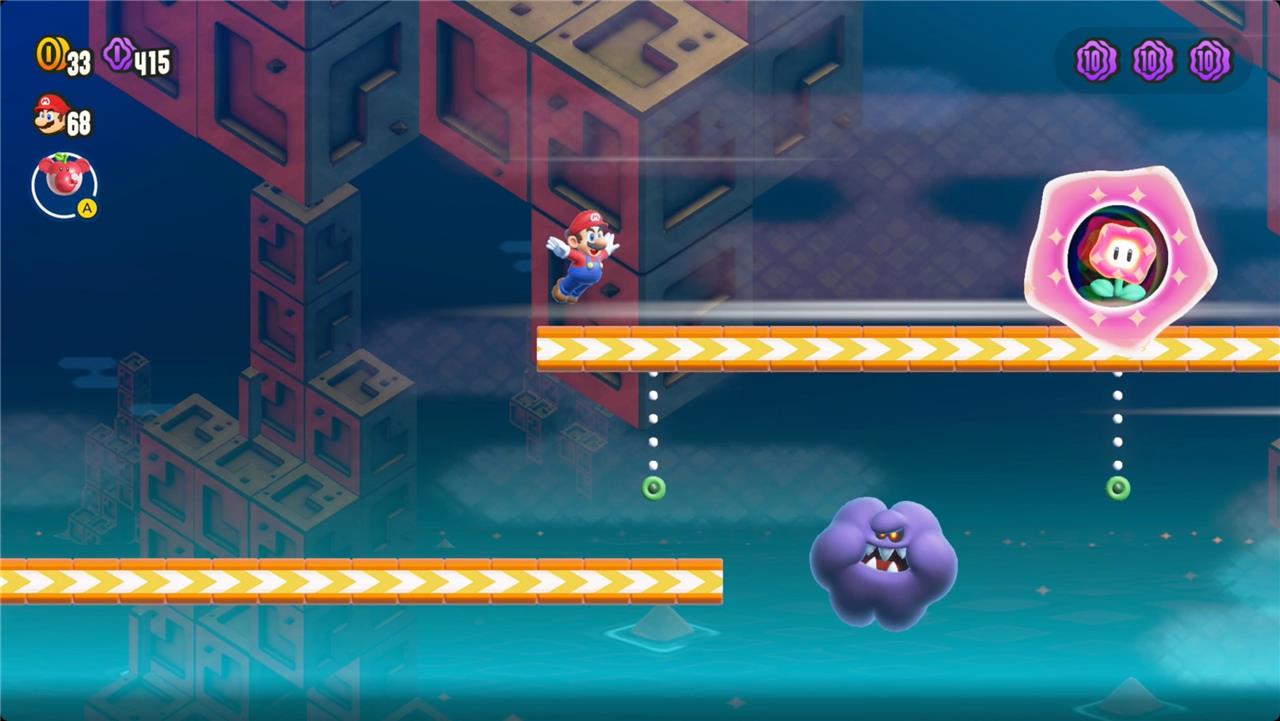 Use the Timer Switches throughout the level to keep the blocks under your feet and you’ll collect a Wonder Seed at the end of the level.