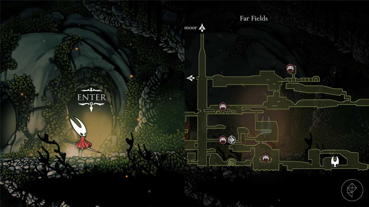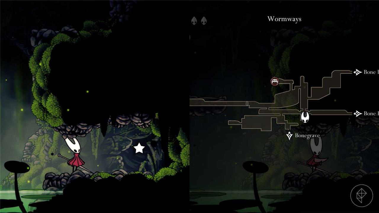 Hidden deep within Shellwood’s dense undergrowth, this shard rests behind a breakable wall guarded by a group of Mossfly Sentinels. After clearing them out, use the wall-jump ability to reach a narrow ledge above a pool of acid. The Mask Shard sits at the end of the path, faintly glowing among the roots-a small reward for those who explore every corner of this overgrown area.