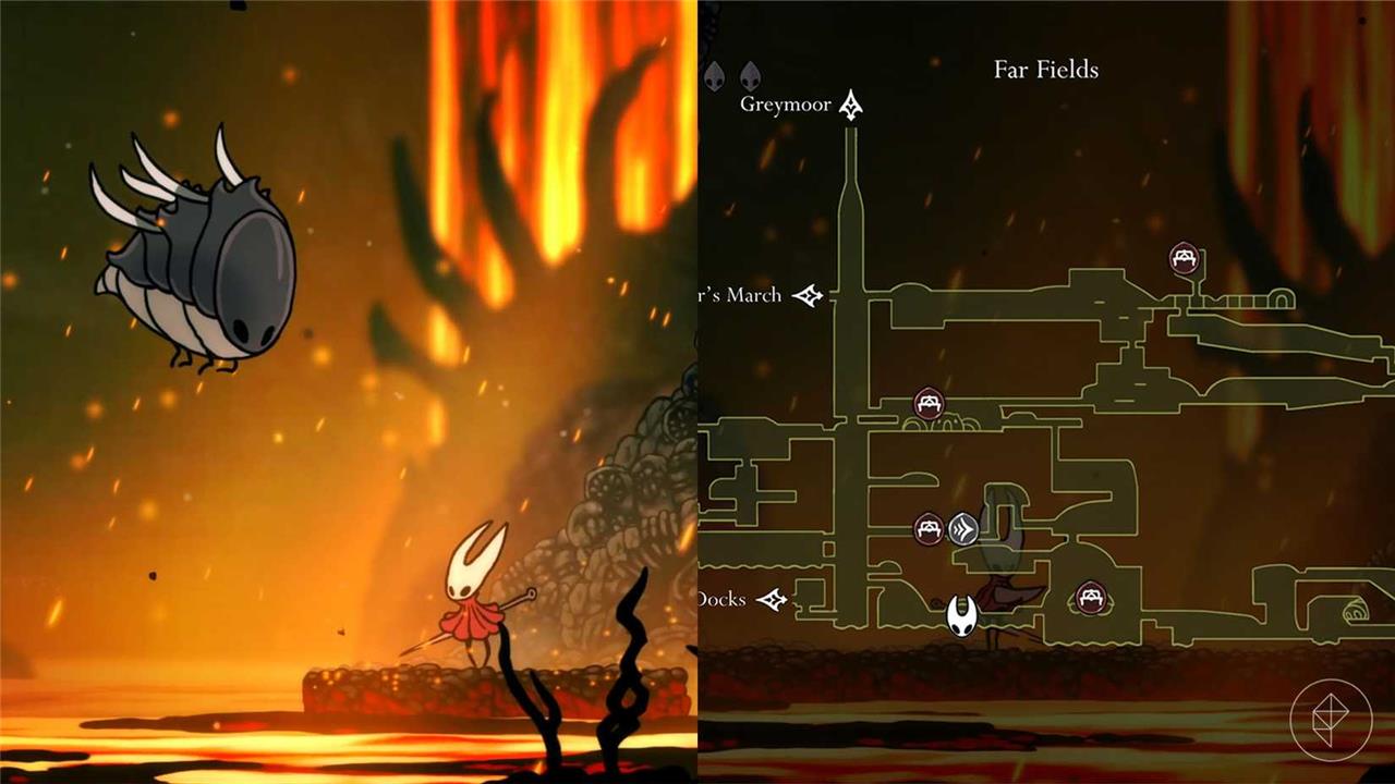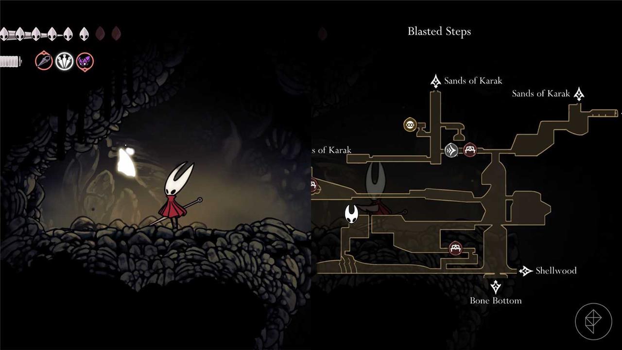 Hidden deep beneath the Marrow pits, the first Mask Shard rests among a heap of brittle bones and hollow shells. To reach it, descend through the Bone Bottom caverns, where fragile platforms crumble underfoot and lurking crawlers guard the narrow paths. Players must time their jumps carefully and use the shifting bone piles to reach a small alcove at the cavern’s base. There, the shard glows faintly beside a cracked idol, half-buried in dust.