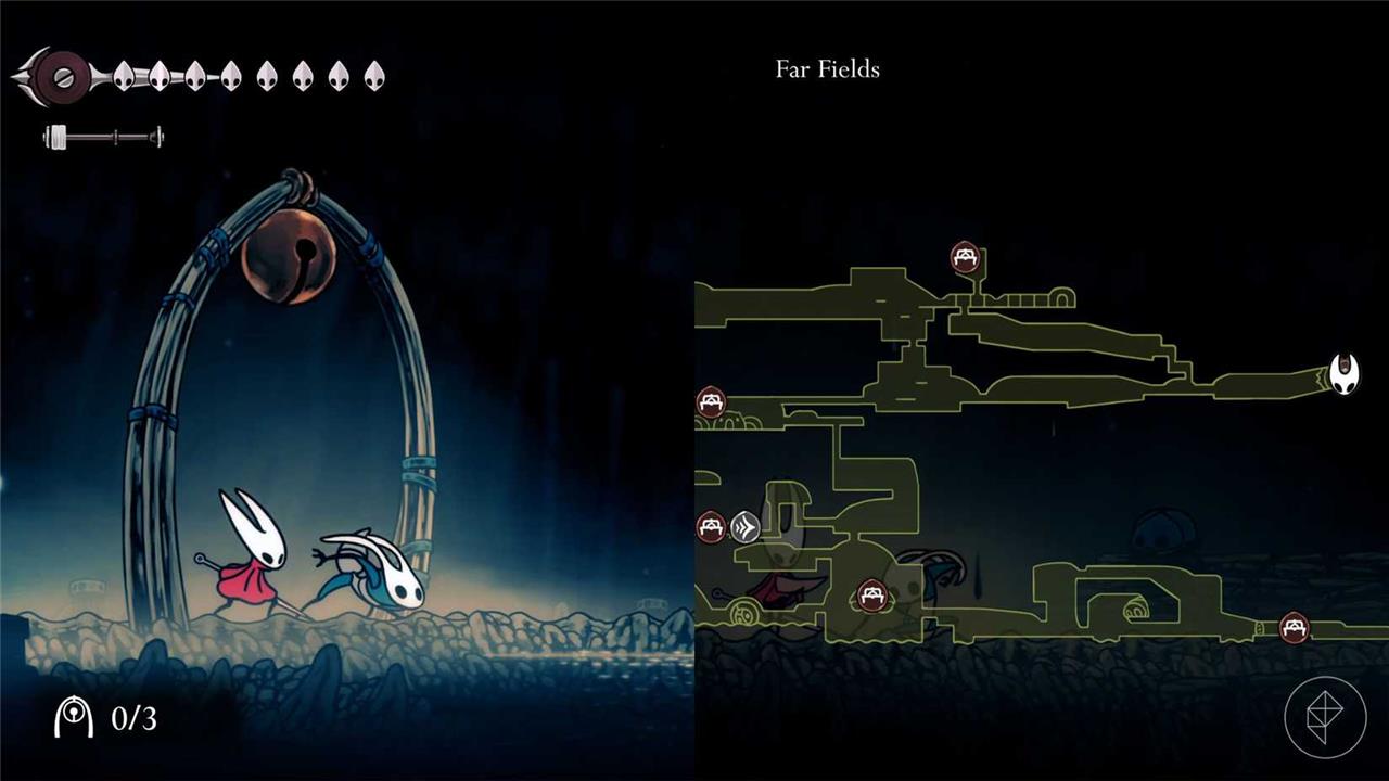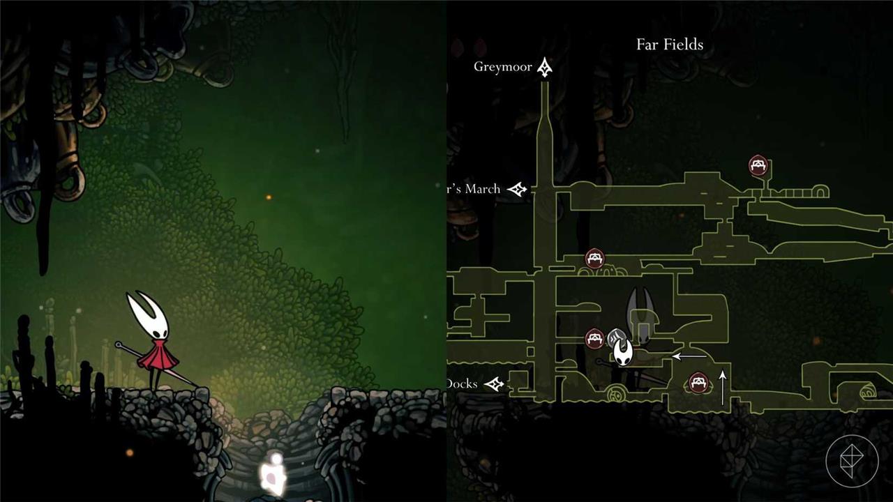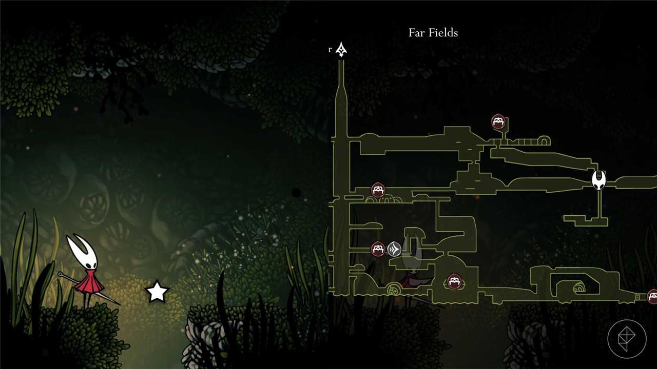To get this mask shard, you’ll need to start Act 3. Head to the top right corner of Far Fields by going through the secret area, which can be accessed by using Silk Soar in front of the statue in Hunter’s March.