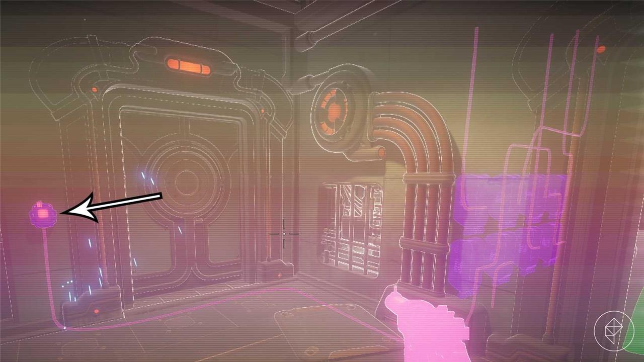 However, not long after entering the N-Ray Range, you’ll find that the path is blocked by a switch puzzle. In case you haven’t found the “On the Trail of the Traitor” puzzle location yet, enter the N-Ray Range through the smaller building on the right (the main entrance is blocked), drop down the hatch, and open the door next to the large tubes with the shiny purple fluid. At the end of this room, crawl through another hatch to find the switch puzzle.