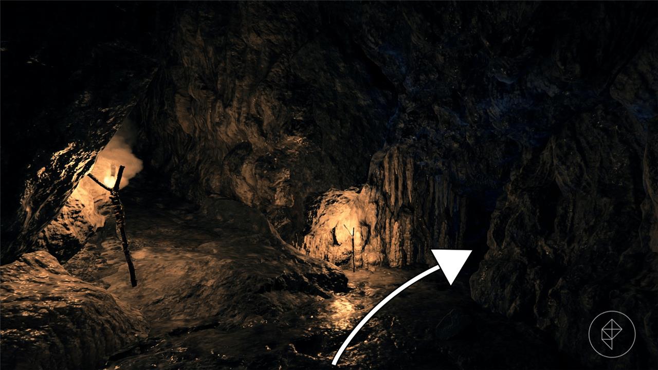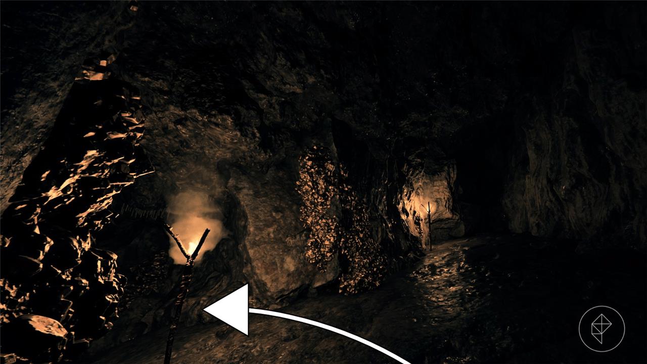 - Continue forward through the cave until you reach the first fork in the road. The left path will lead to the rope gun, but the right path will lead to a page that will provide a little lore.