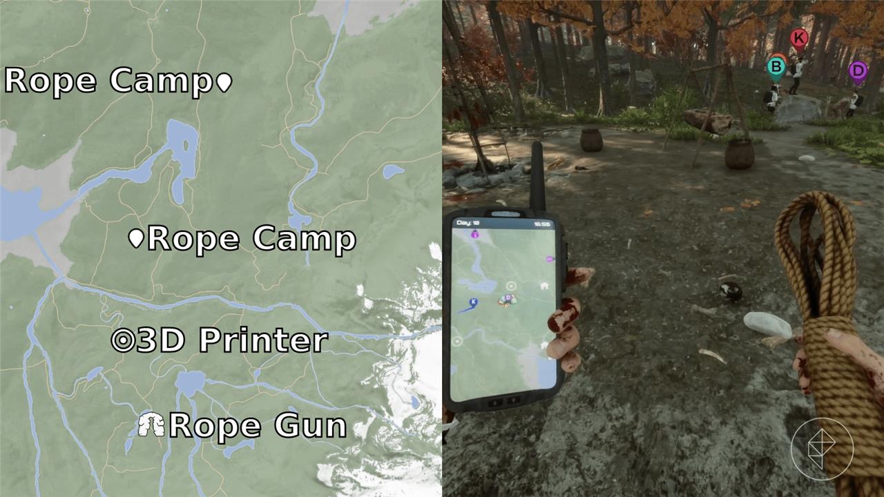 Rope can be found in caves, camps, bunkers, and random containers scattered around the map in Sons of the Forest. There are a few cannibal camps that contain multiple ropes near a few of the spawn points and the Rope Gun cave. Check out the annotated map above to find a few of the nearby cannibal camps.