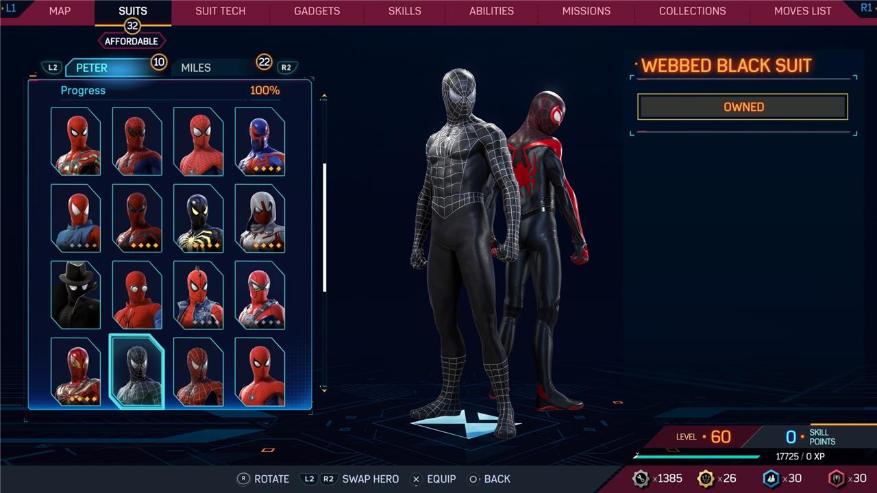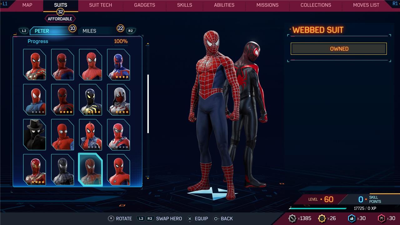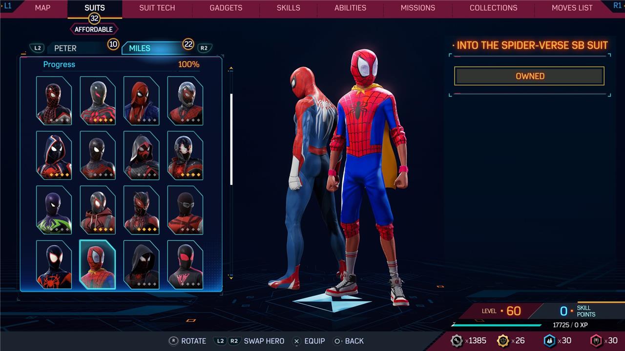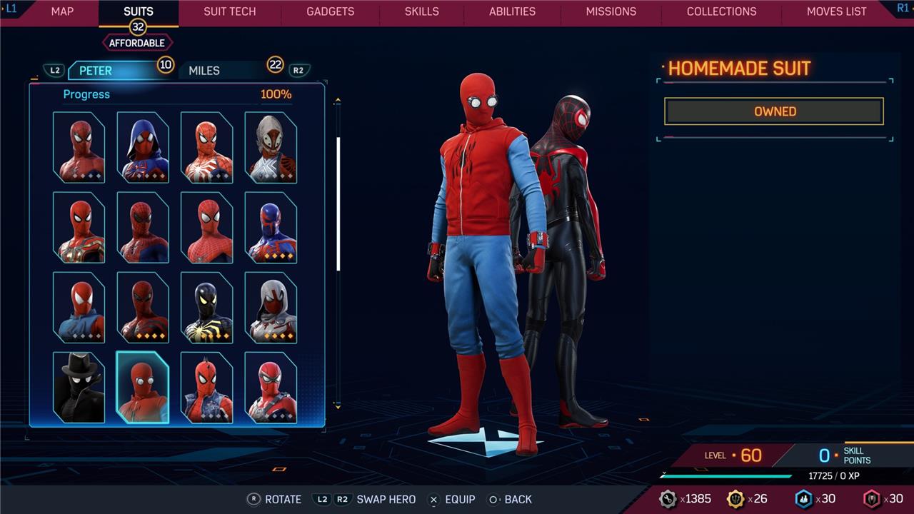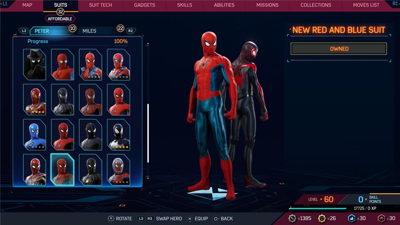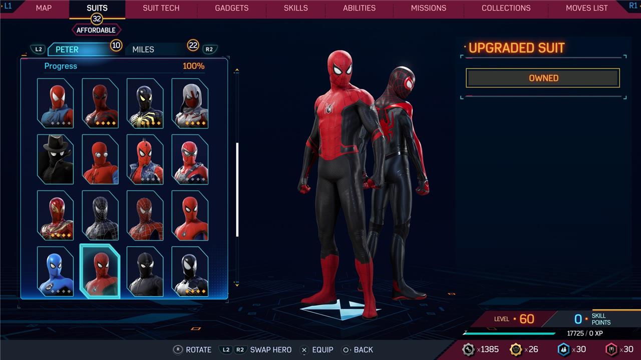 In this Spider-Man 2 guide, we’ve listed out all suits in Spider-Man 2 for Peter Parker and Miles Morales (as well as images, so you can see how cool they look before you earn them). We’ve also detailed how to unlock all of these suits, how much each suit costs, and whether or not these suits have additional styles for you to acquire.
