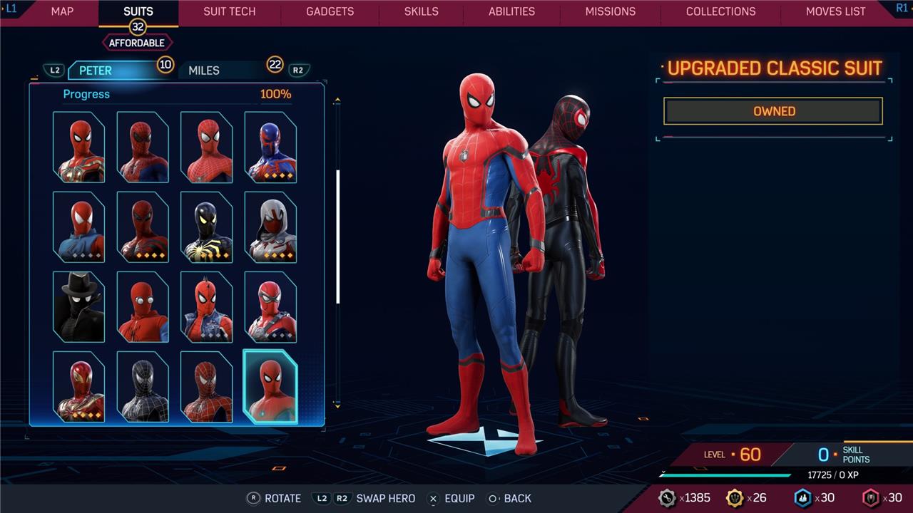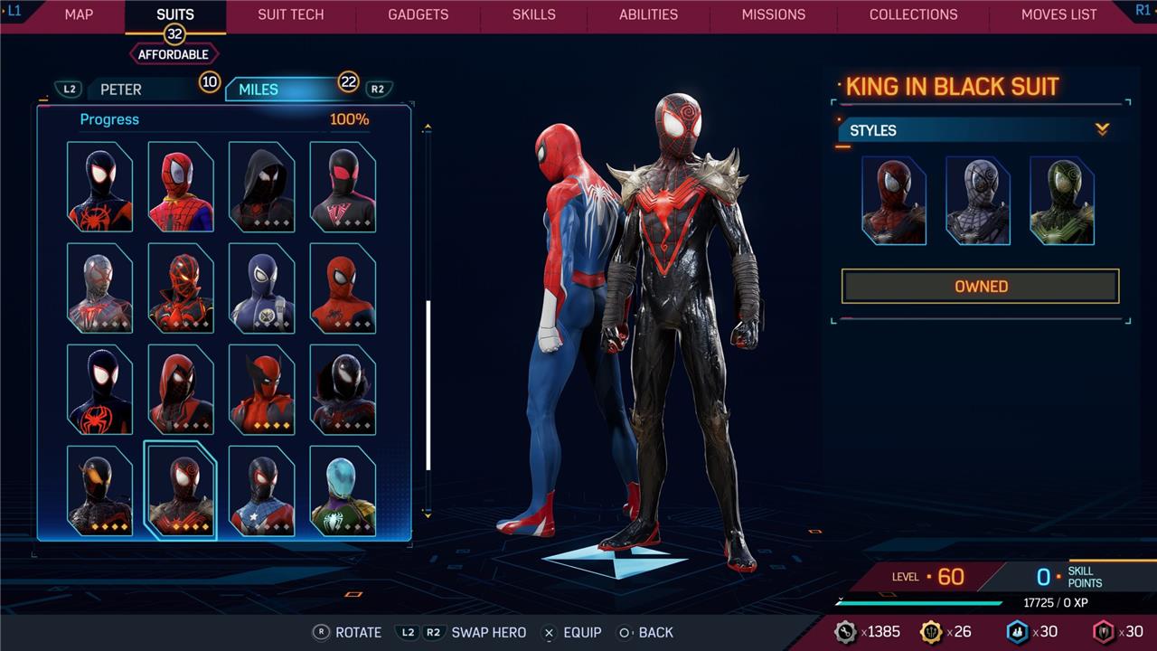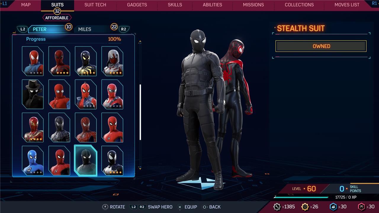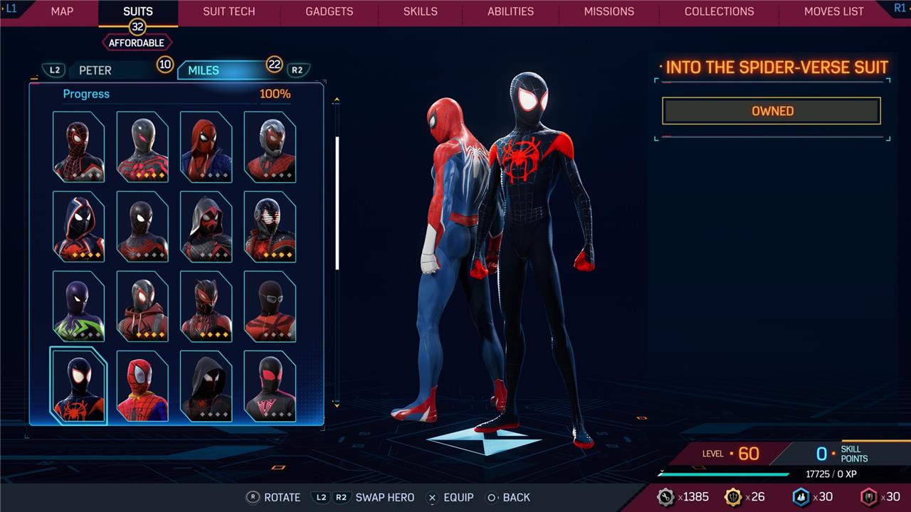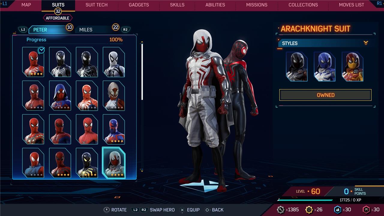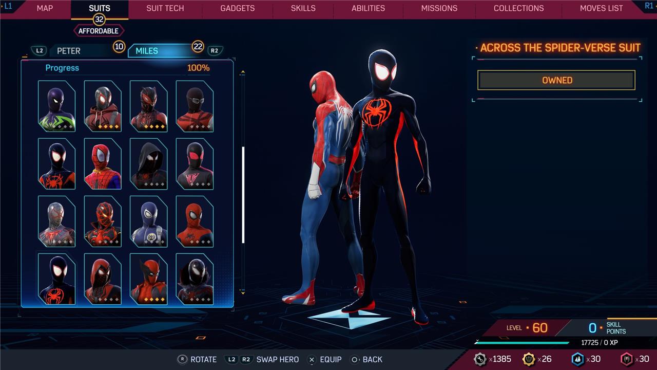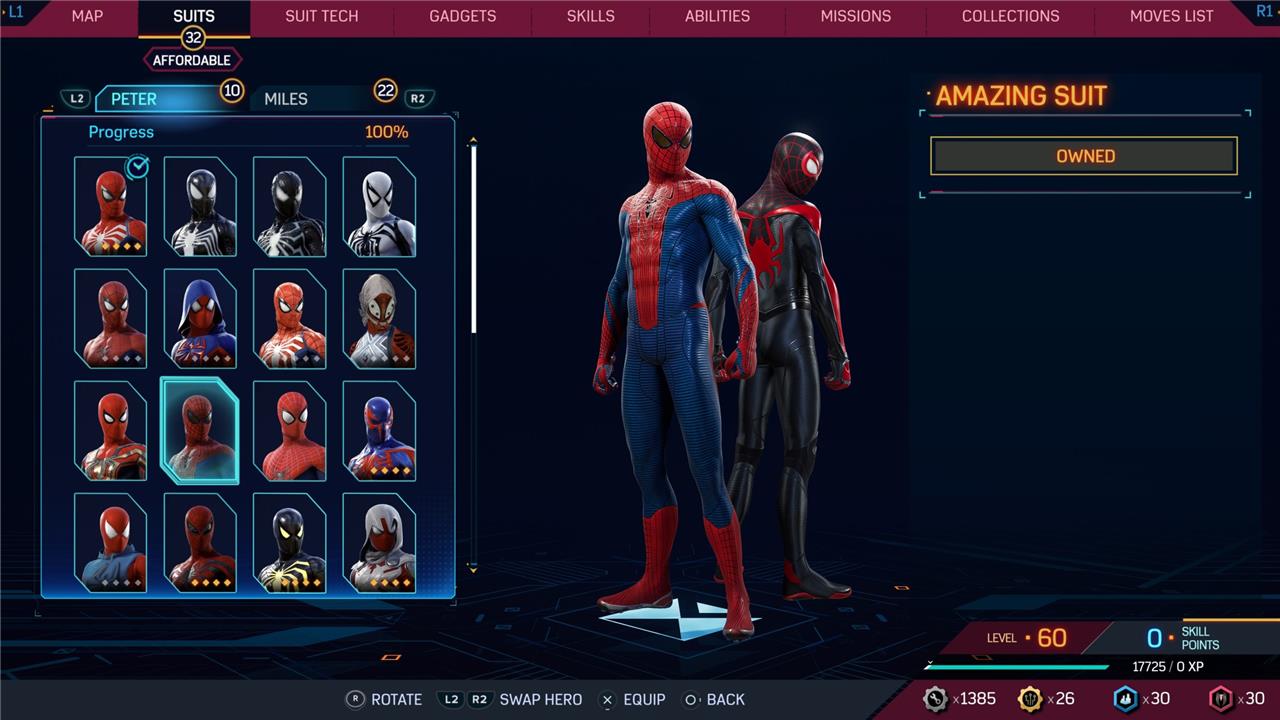 In this Spider-Man 2 guide, we’ve listed out all suits in Spider-Man 2 for Peter Parker and Miles Morales (as well as images, so you can see how cool they look before you earn them). We’ve also detailed how to unlock all of these suits, how much each suit costs, and whether or not these suits have additional styles for you to acquire.