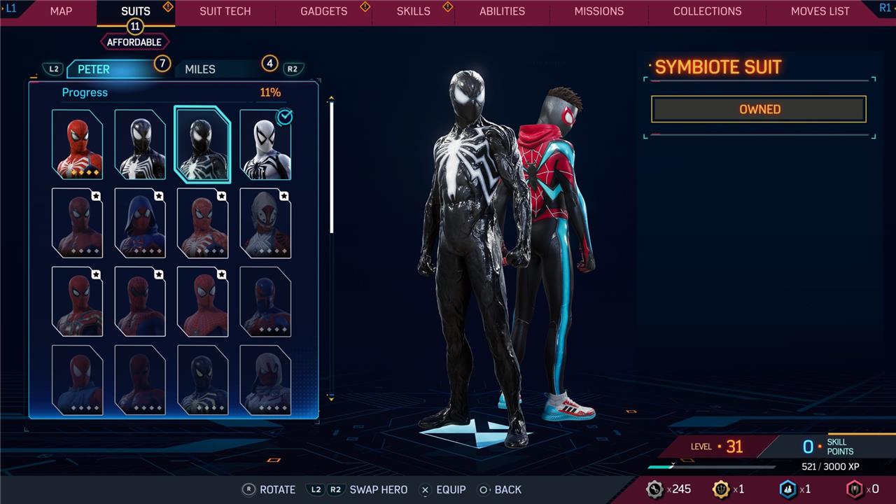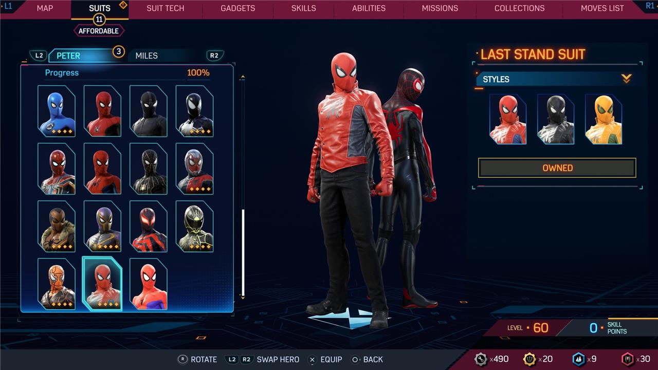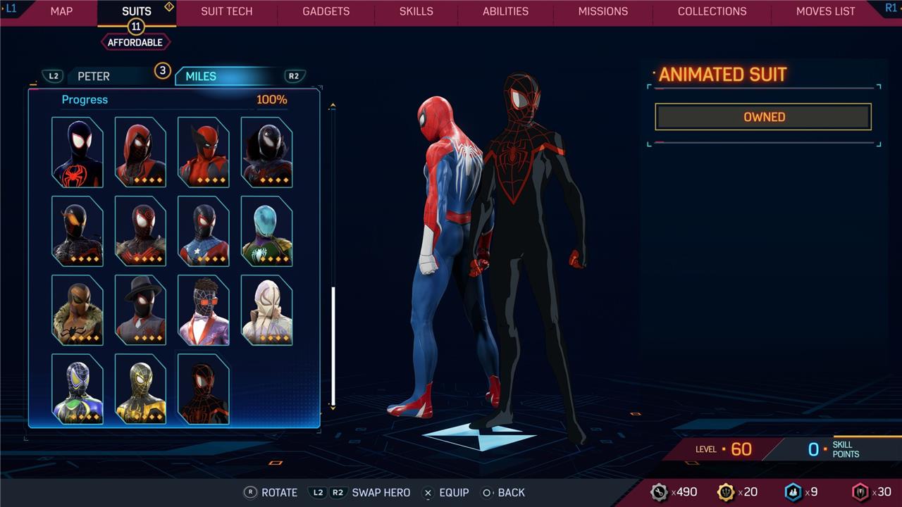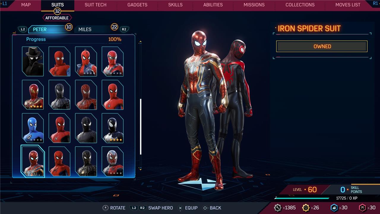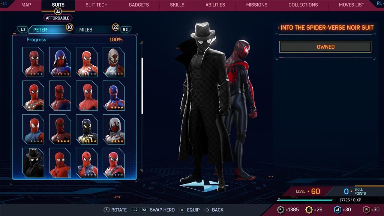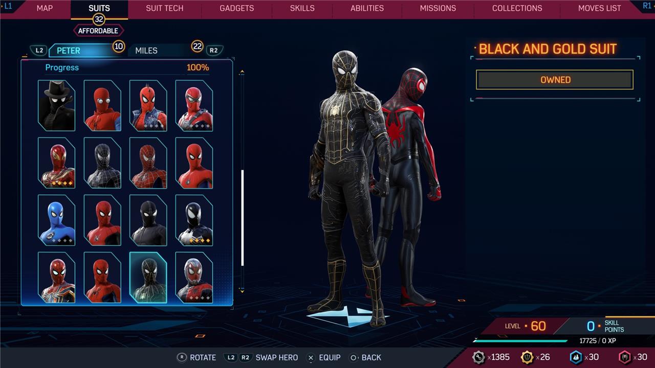 In this Spider-Man 2 guide, we’ve listed out all suits in Spider-Man 2 for Peter Parker and Miles Morales (as well as images, so you can see how cool they look before you earn them). We’ve also detailed how to unlock all of these suits, how much each suit costs, and whether or not these suits have additional styles for you to acquire.