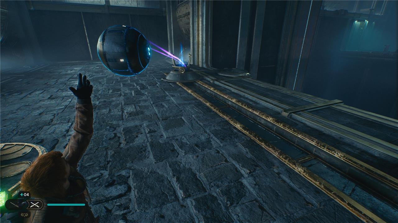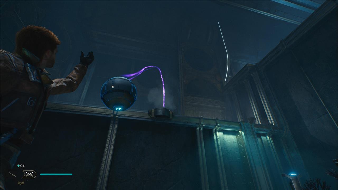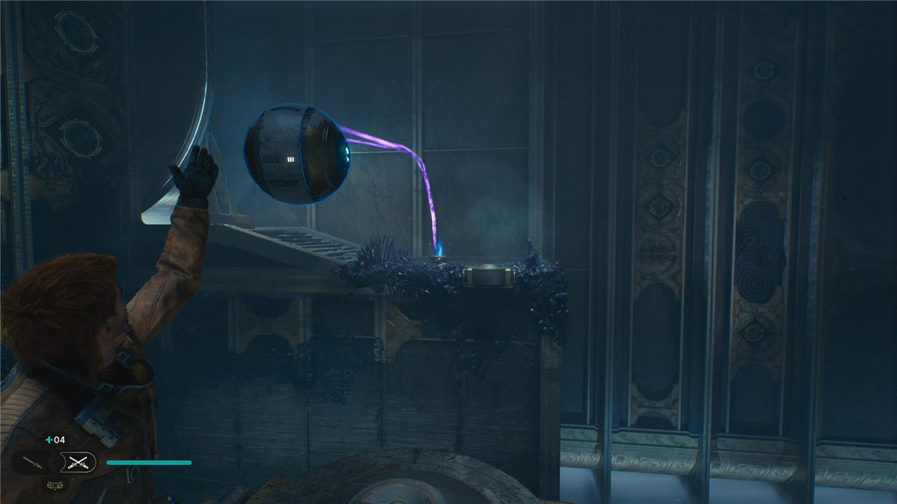 When you walk into the Chamber of Reason, you’ll see a giant glowing orb and a corresponding blue socket. Use Force Pull to grab the orb, then toss it in the socket. You’ll know you’ve lined it up correctly when the connecting beam of light turns purple.