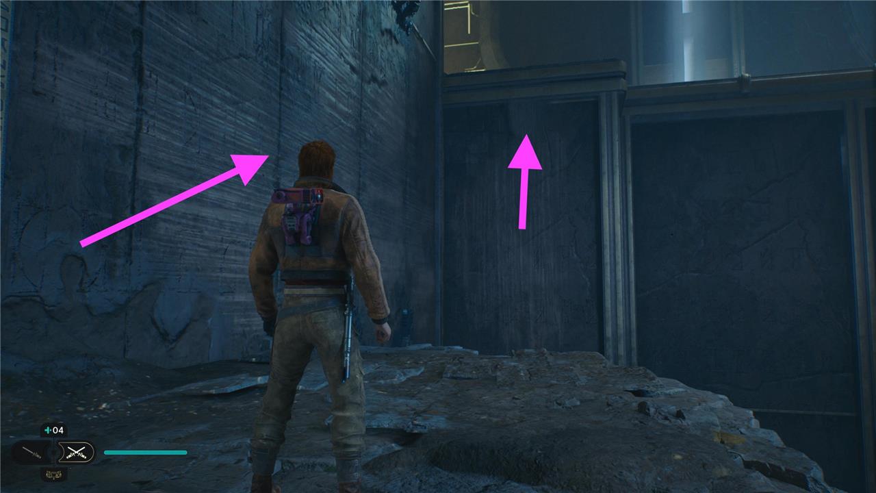 On the other side, you’ll find a Force essence that gives you the Dexterity perk. Turn around. On the wall to your left, you’ll see a lever you can Force Push, which activates a bridge that leads to the exit.