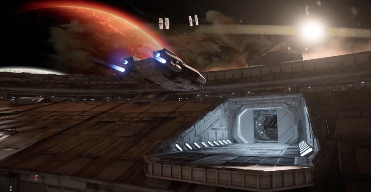 Once the ramp drops, you just have to get to the ship without getting shot (too much). On board, escaping the station just means flying out. After that, there’s a few TIEs to deal with, but your goal is just to fly for the debris field as fast as you can.