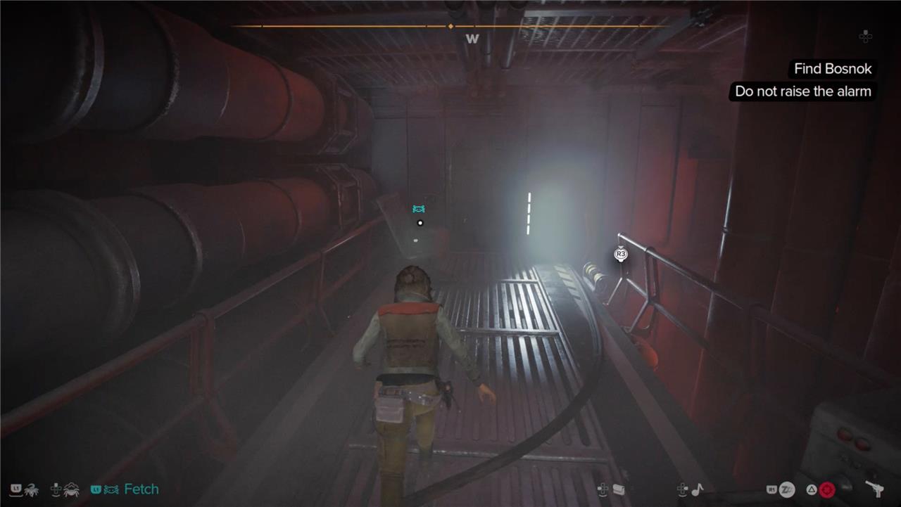Once you reach the Imperial fueling station, you’ll have to check in with Waka and then sneak out through the cargo elevator. As soon as you’re out of the ship, you’ll need to keep out of sight.