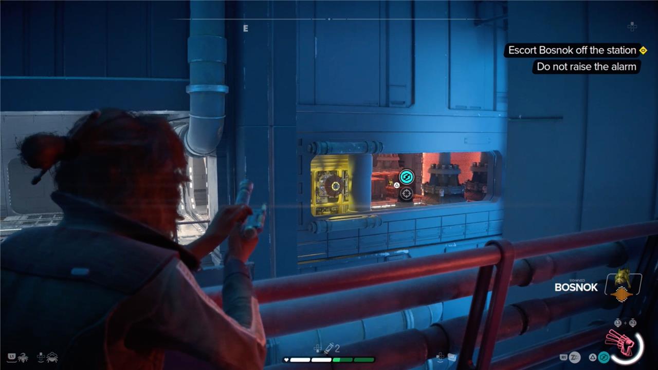 Disable Cameras and Alarms Quietly: Use your companion Nix to disable security cameras with an iron bolt and hack terminals to deactivate alarms and energy barriers, ensuring you don’t raise any alerts.