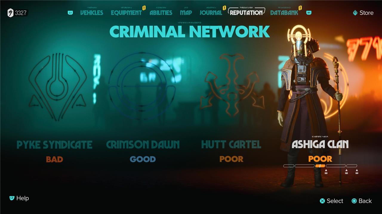 Star Wars Outlaws’ syndicate reputation system determines what kind of relationship you have with each of the four organizations you encounter: the Pyke Syndicate, Crimson Dawn, the Hutt Cartel, and the Ashiga Clan. The natures of each group might be wildly different, but the reputation system works the same for each.