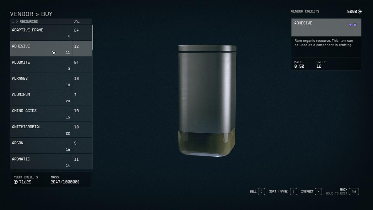 The quickest way to get adhesive in Starfield without hunting enemies is to buy it from vendors who restock their supplies regularly. For example, shops like Clint’s Collectibles on the planet Gagarin in the Alpha Centauri system sell adhesive, and you can restock their inventory by resting or waiting for about 24 to 48 hours in-game. This method is faster and more reliable than foraging or combat. Alternatively, on PC, you can use console commands to instantly add adhesive to your inventory if you prefer to skip the in-game grind altogether.